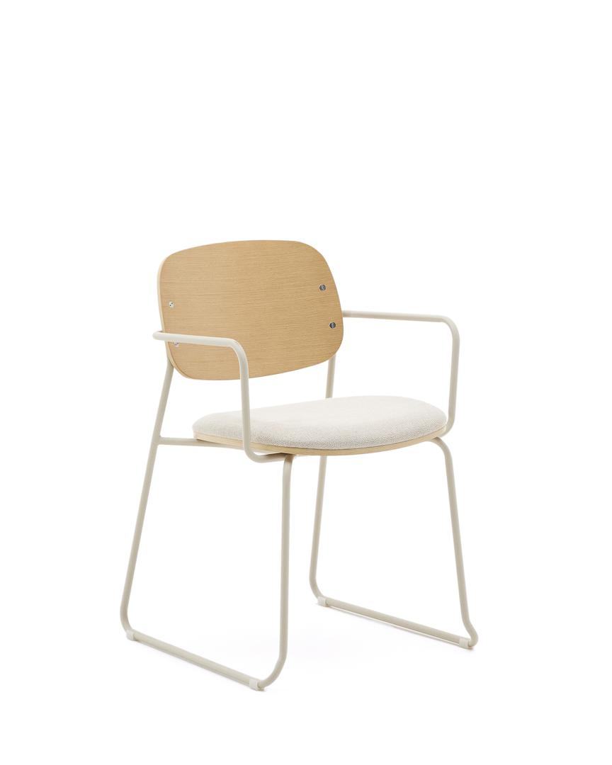 Стул La Forma (ех Julia Grup) Стул Meli с подлокотниками с сиденьем из бежевого шенилла и бежевыми металлическими ножками арт. 262291