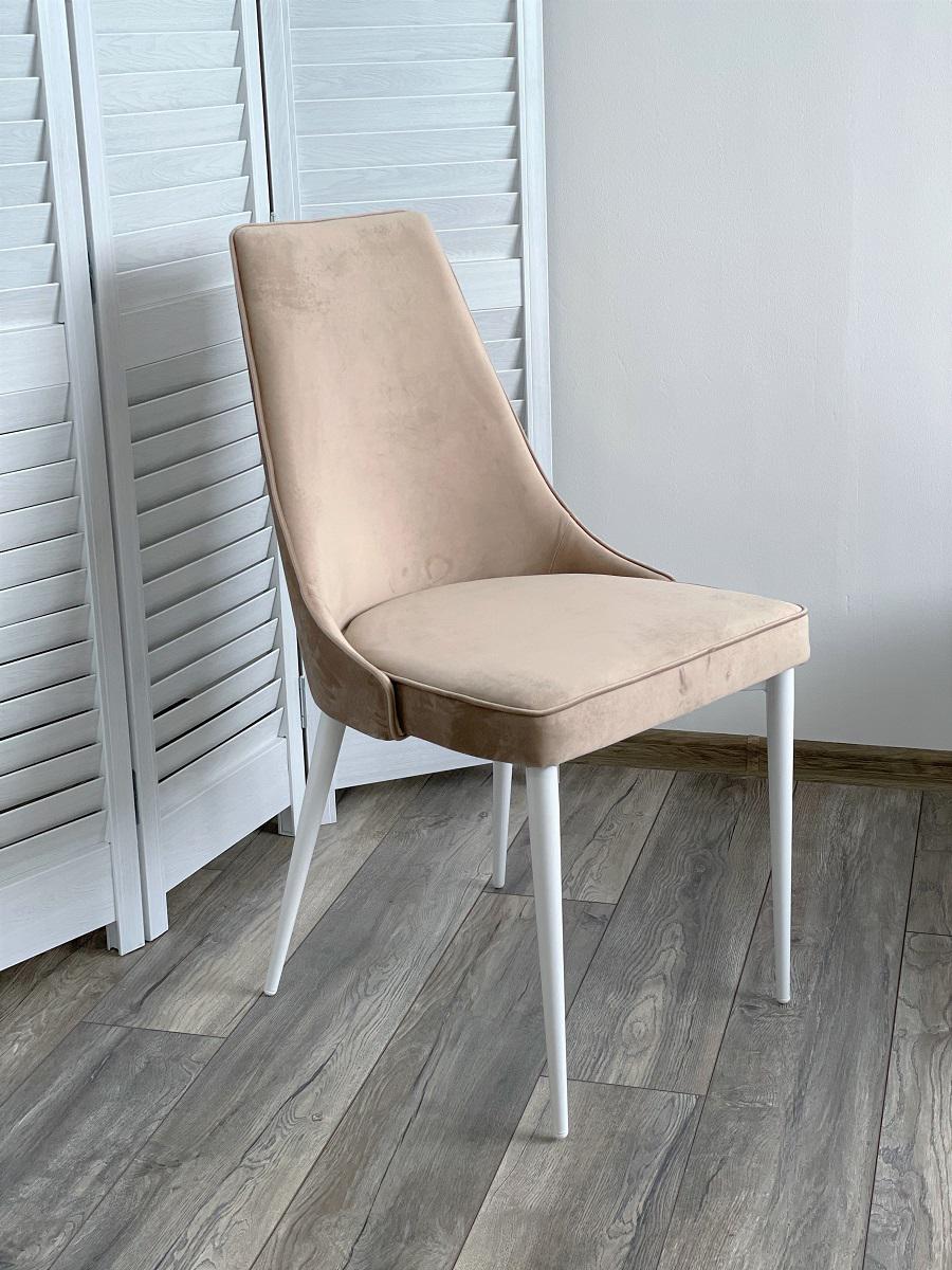 Стул М-СИТИ Стул НЕПАЛ (NEPAL-P) БЕЖЕВЫЙ #5, велюр/ белый каркас арт. 461MC03822