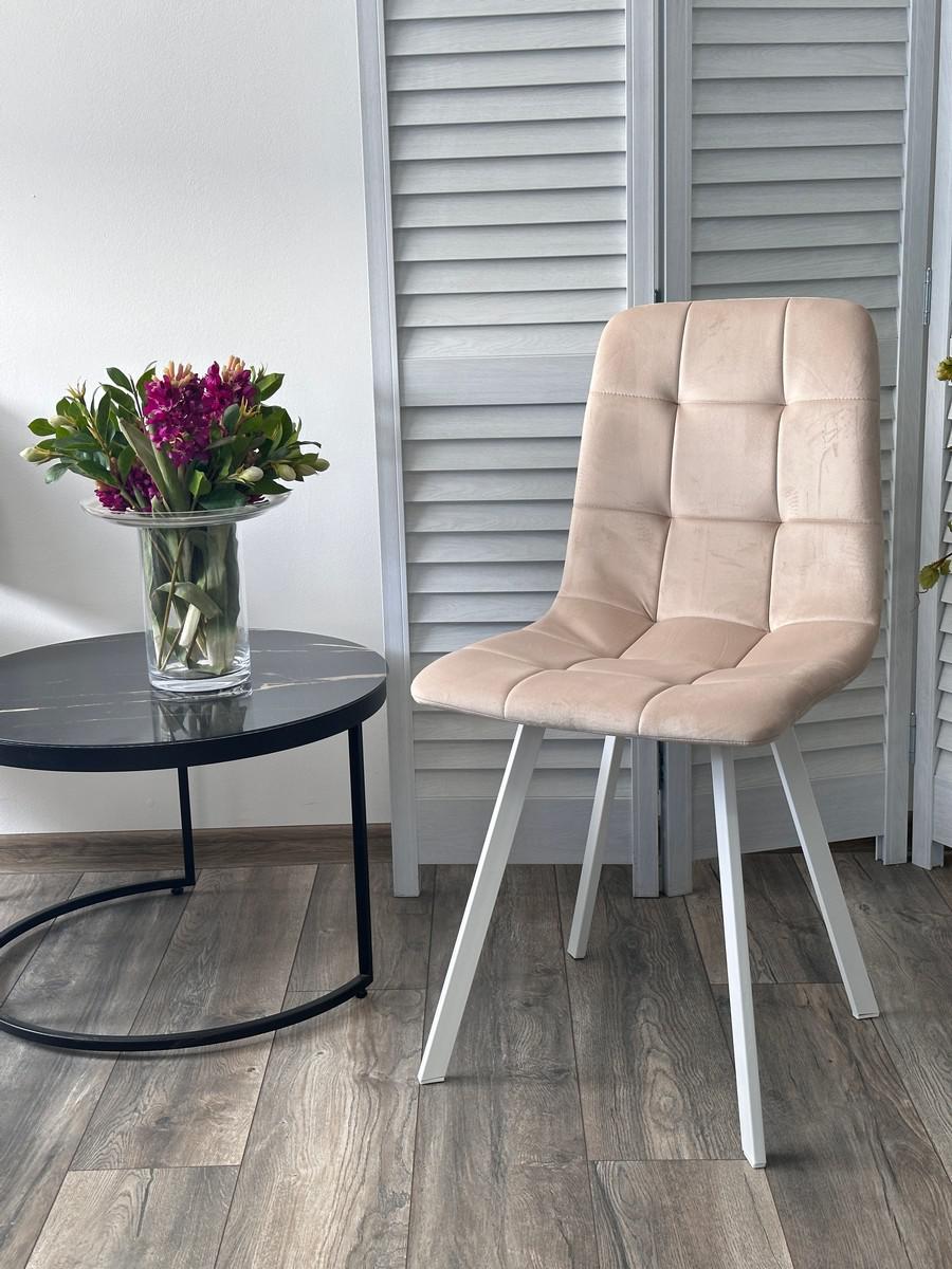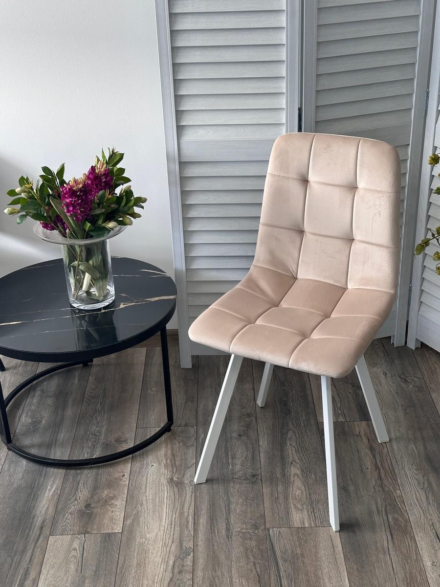 Стул М-СИТИ Стул РИЧИ, цвет H-06 Бежевый, велюр / белый каркас М-City арт. 688M05746