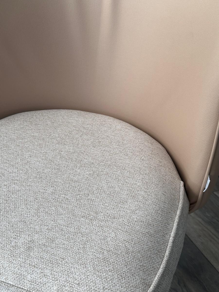 Комбинированная обивка: сиденье - ткань цвета АЙВОРИ, спинка - экокожа пудрового цвета.