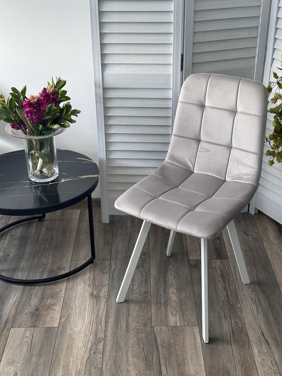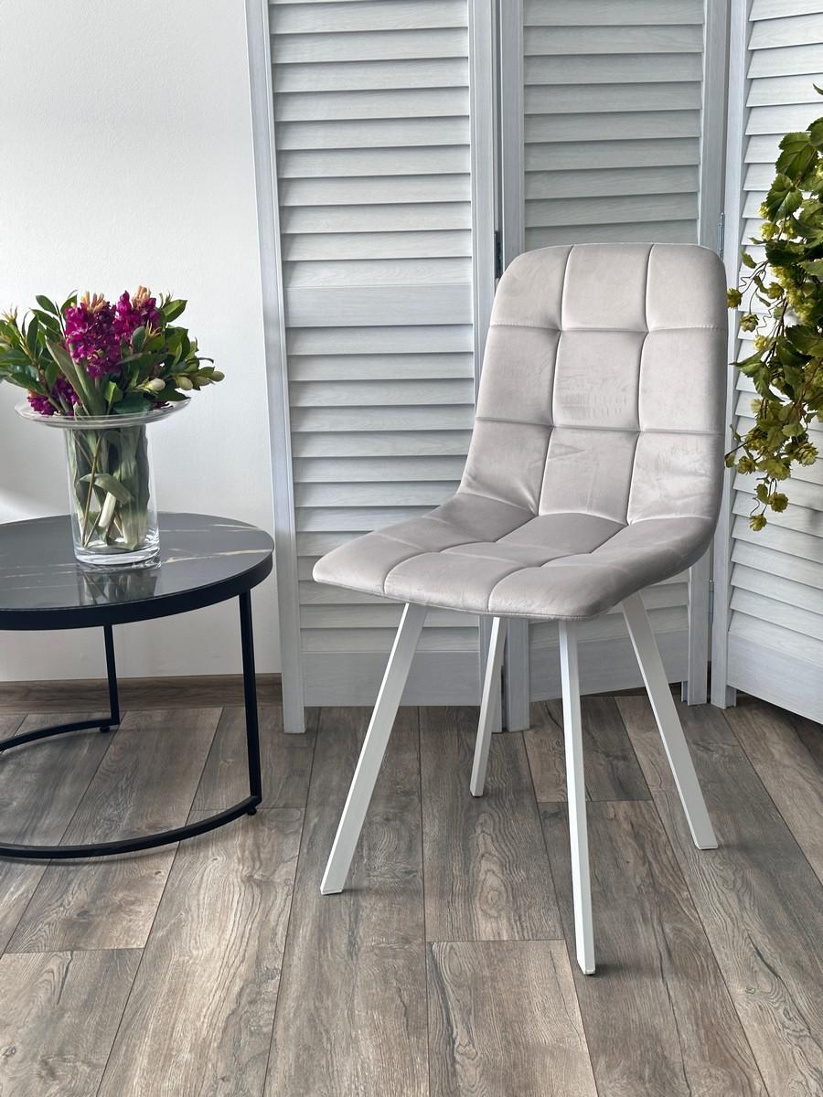 Стул М-СИТИ Стул РИЧИ, цвет H-09 Светло-серый, велюр / белый каркас арт. 688M05747