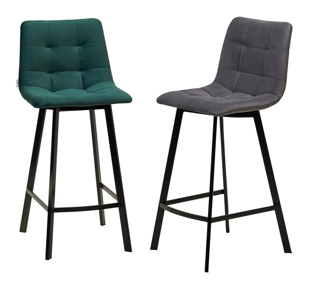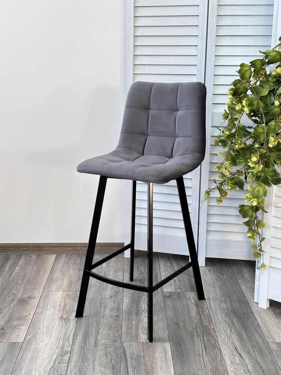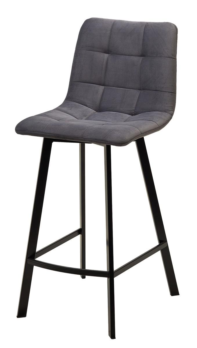 Стул М-СИТИ Полубарный стул ЧИЛИ-КБ (CHILLI-QB SQUARE) серый #27, велюр/ черный каркас (H=66cm) арт. 461MC05901