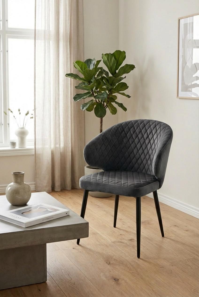 Стул М-СИТИ Стул ХИЛТ, цвет B28 Темно-серый, велюр / черный каркас арт. 635M06226
