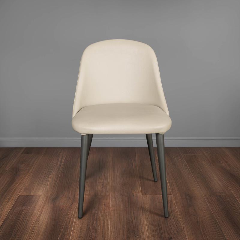 Мягкий стул супермодной формы со скругленной спинкой из коллекции Marbella от бренда MOD Interiors. Металлические ножки в темно-сером матовом лаке. Мягкое сидение и спинка в эко-коже в серых тонах. По дизайну и цветовому решению стул прекрасно подходит к обеденным, письменным и туалетным столам в коллекции Marbella от бренда MOD Interiors. На заказ обивку данного стула можно выбрать из образцов фабрики.