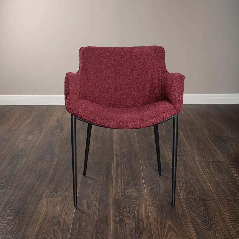 Стул с подлокотниками от фабрики MOD Interiors с закругленной спинкой и металлическими ножками, выполнен в современном стиле. Каркас изготовлен из высококачественного металла, наполнитель пенополиуретан высокой плотности.