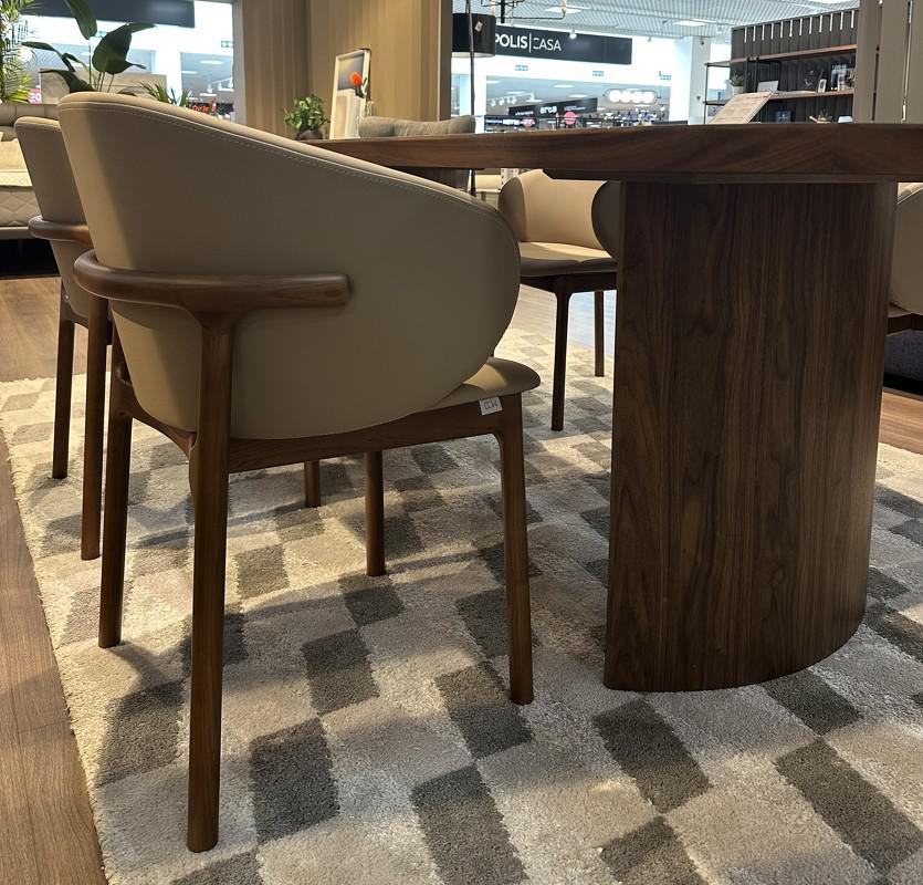 Эргономичный стул от испанского бренда Mod Interiors - идеальный вариант для столовой в современном стиле. Каркас стула выполнен из массива ясеня, тонированного в цвет орех. Спинка и сиденье изготовлены из многослойной фанеры. Стул обит эко-кожей в бежевых тонах. Наполнитель спинки и сидения - пенополиуретан высокой плотности. Стул - универсальный, можно использовать в гостиной, на кухне, в кабинете. Удобная эргономичная посадка, спинка с боковой поддержкой спины.