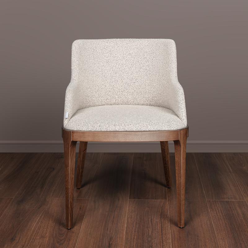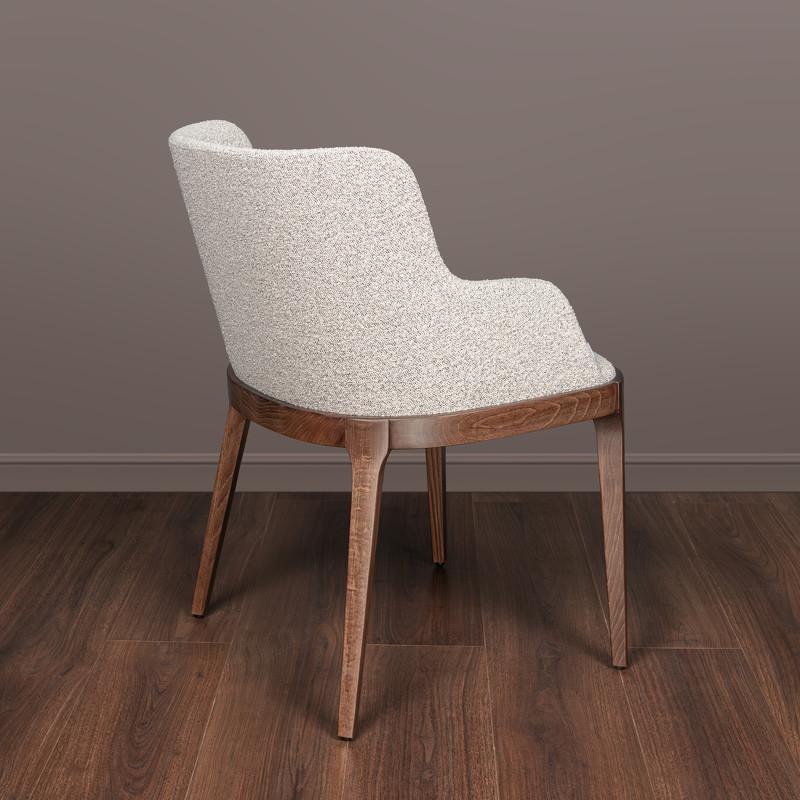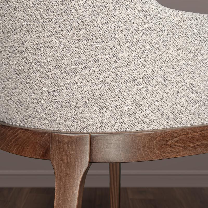 Комфортный стул Garbo с мягкими подлокотниками от бренда Mod Interiors. Каркас и ножки стула выполнены из массива бука. Сидение - из МДФ высокой плотности. Спинка - многослойная фанера. Обивка - ткань букле в светло-серых тонах. Отделка стула - бук, тонированный под орех. В конструкции сиденья применены мебельные ремни, обеспечивающие невероятный комфорт посадки. Высота сидения 48 см. Ткань букле имеет отличные показатели по износоустойчивости и плотности. Рекомендации по уходу за тканью: Сухая уборка пылесосом с мягкой щеткой; Влажная уборка микрофиброй; Беречь от прямых солнечных лучей; Не ближе 40-60 см от источников тепла; Не использовать отбеливатель; Не использовать абразивные средства.