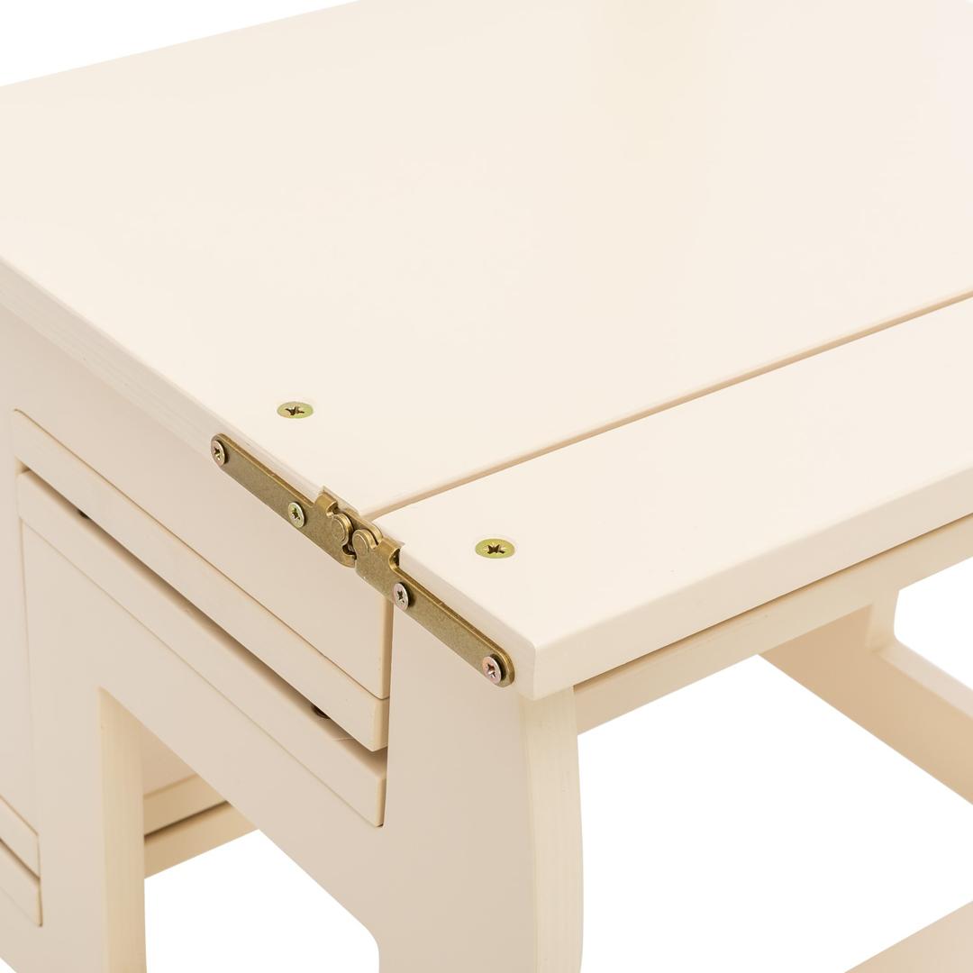 Зачем приобретать несколько предметов мебели, если с ролью каждого из них успешно справляется один. Одним легким движением руки этот стул превращается... в стремянку. Все очень просто — стул-трансформер, изготовленный из сортовой фанеры и покрыт высококачественным итальянским шелковисто-матовым лаком, способен удивить того, кто его еще не видел. Стул способен выдержать нагрузку до 150 кг.