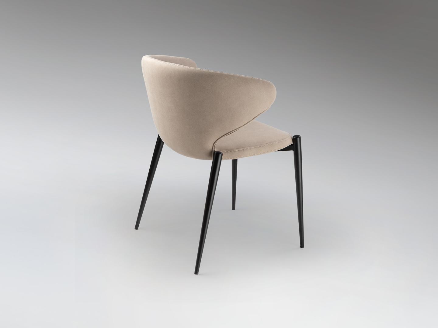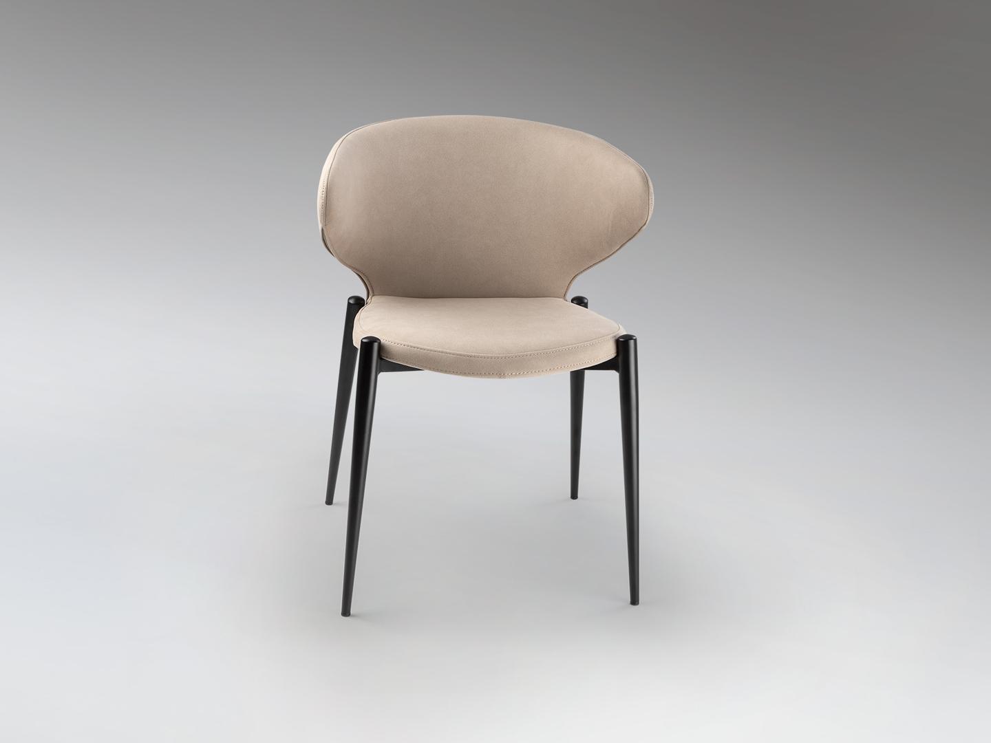 Стул из металла, матово-черная отделка. Сиденье и спинка из фанеры и поролона. Обивка из 100% полиэстера бежевого цвета. Химчистка.