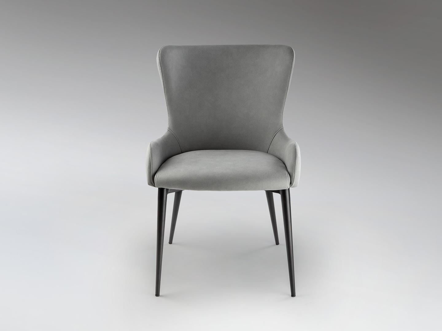 Стул из металла, матово-черная отделка. Сиденье и спинка из фанеры и поролона. Обивка из 100% полиэстера светло-серого цвета. Химчистка.