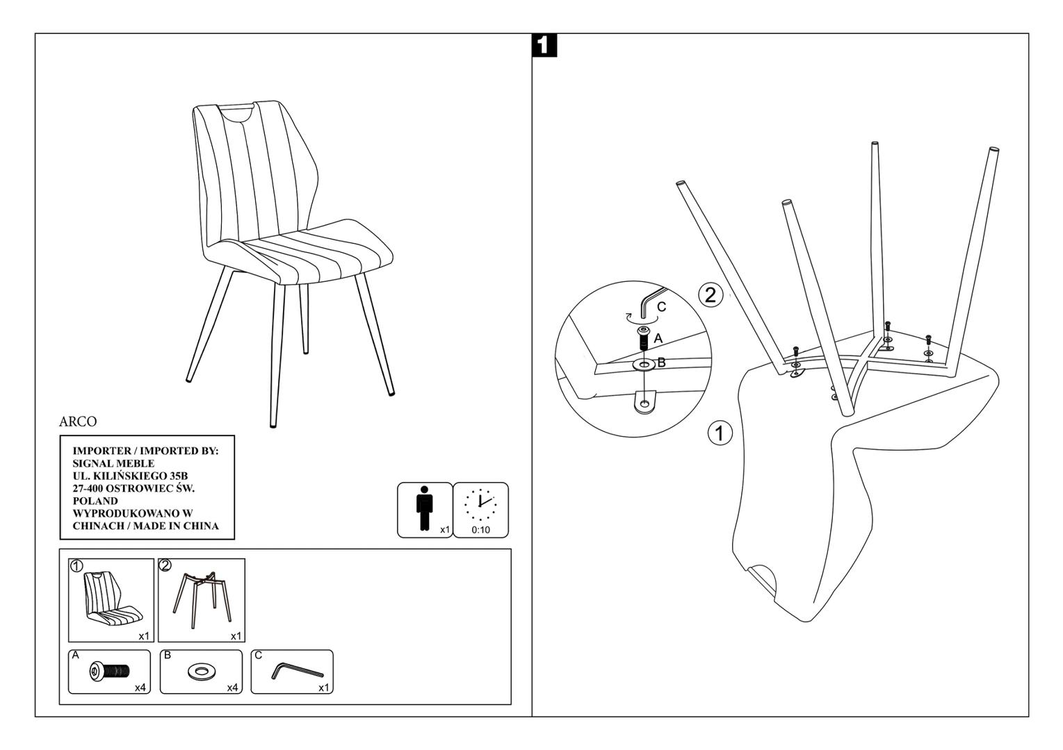 Стул Signal Стул кухонный Signal ARCO VELVET (черный/черный) арт. ARCOVCC