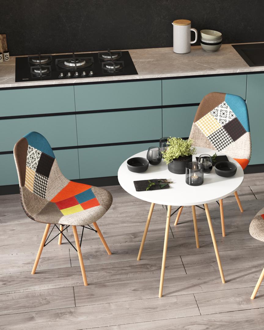 Стул Eames DSW в тканевой обивке в стиле пэчворк, сиденье платиковое, ножки деревянные