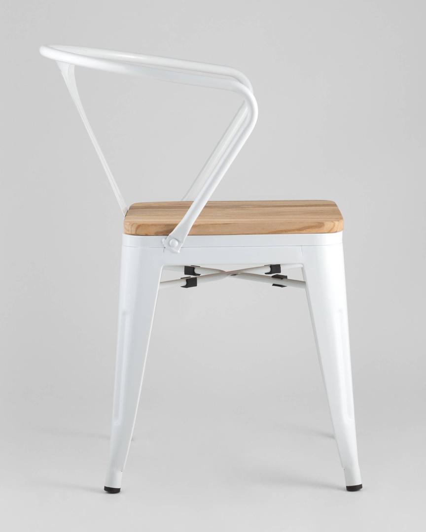 Стул Stool Group TOLIX с подлокотниками белый матовый + светлое дерево, металлическое основание, оцинкованный металл с порошковым напылением, сиденье из натурального дерева