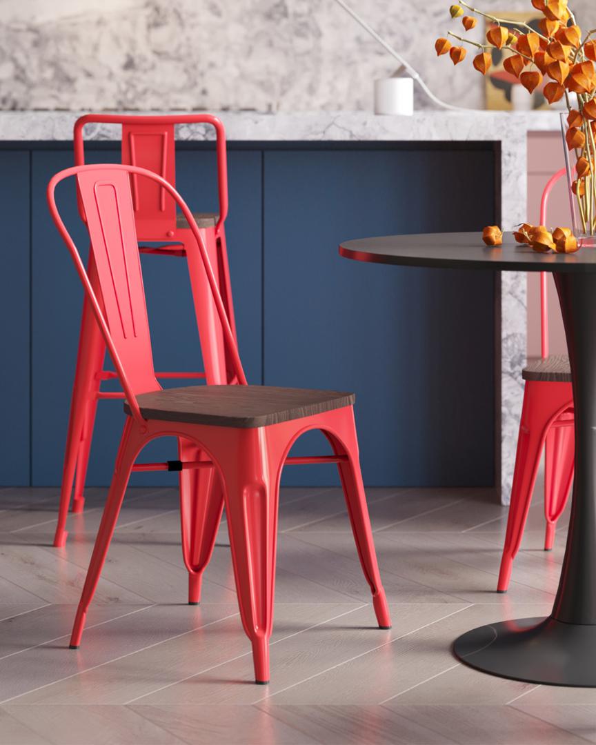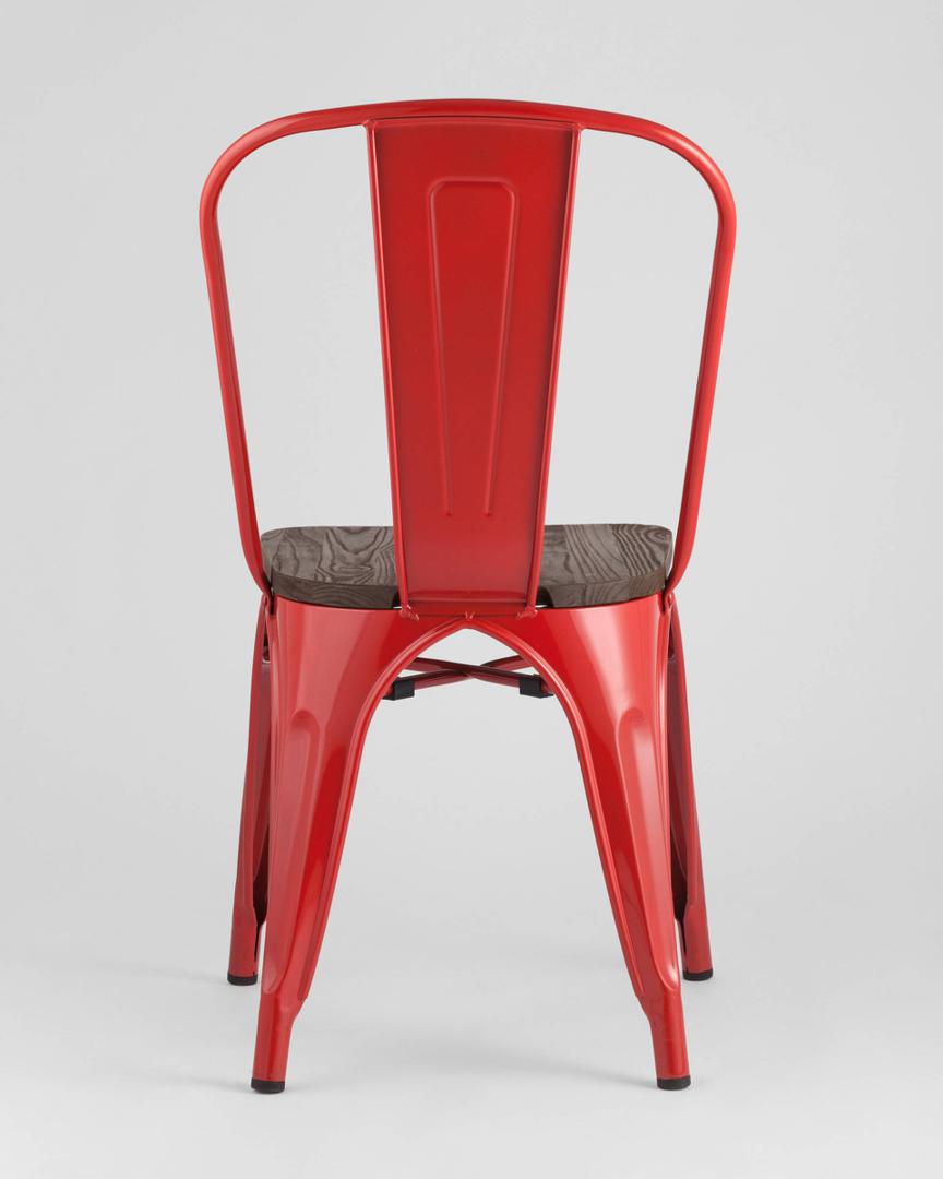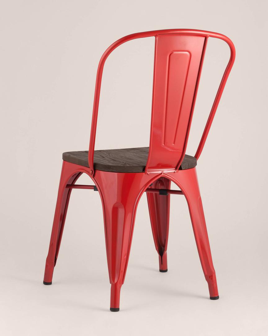 Стул Stool Group TOLIX WOOD красный глянцевый, основание и спинка оцинкованная сталь, сиденье тёмное дерево