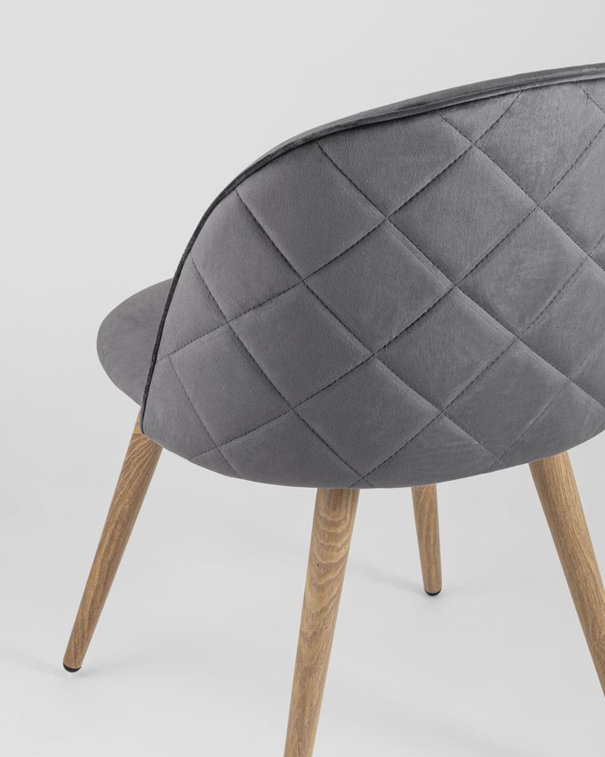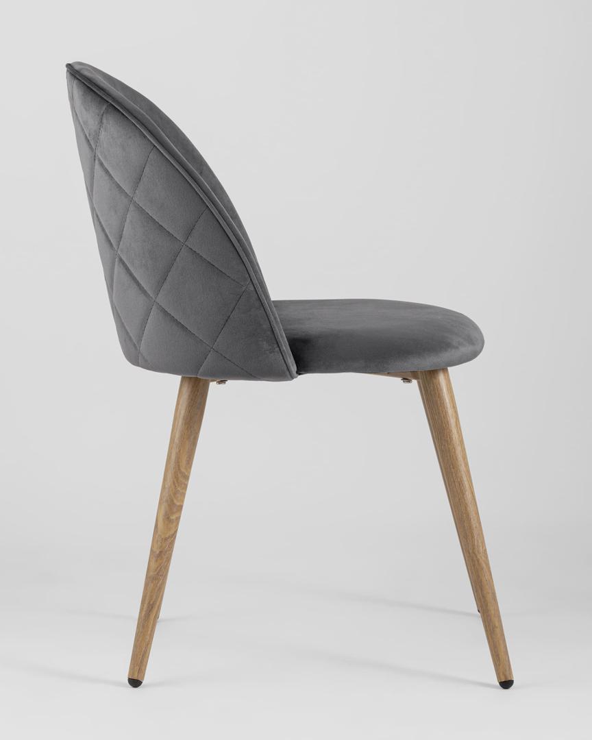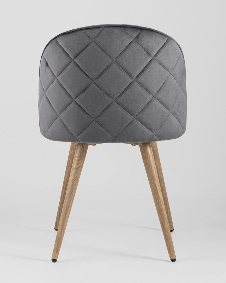 Стул Stool Group Лион с ромбами серый, металлические ножки под дерево, велюровая ткань, спинка с ромбовидной стежкой