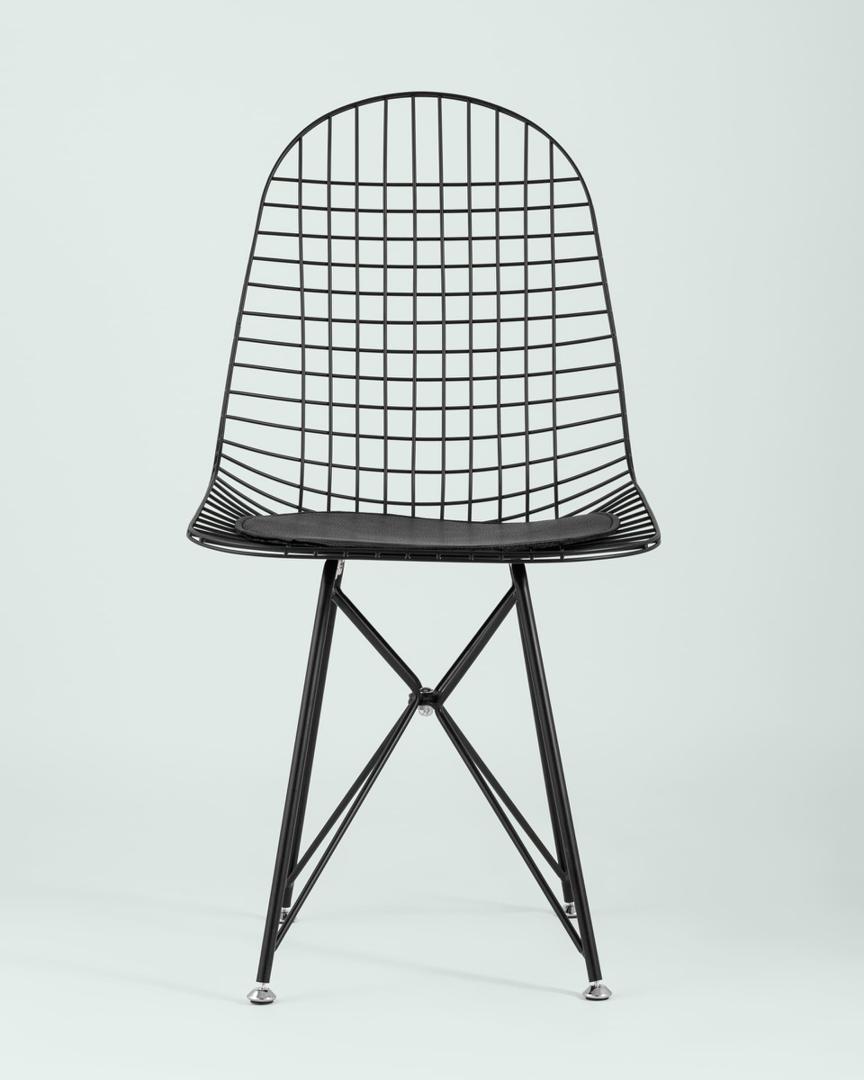 Стул обеденный Eiffel из металла цвет черный с подушкой из черной экокожи