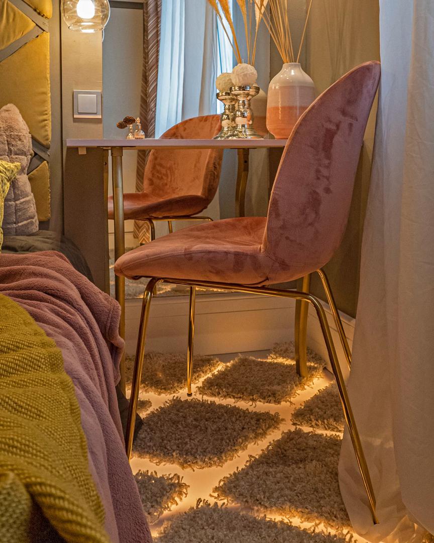 Стул Stool Group Beetle пудровый, металлический каркас, бархатная обивка, золотые ножки
