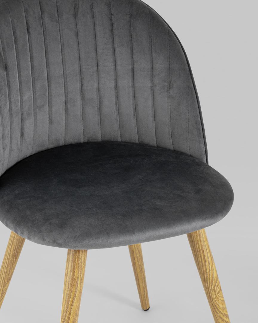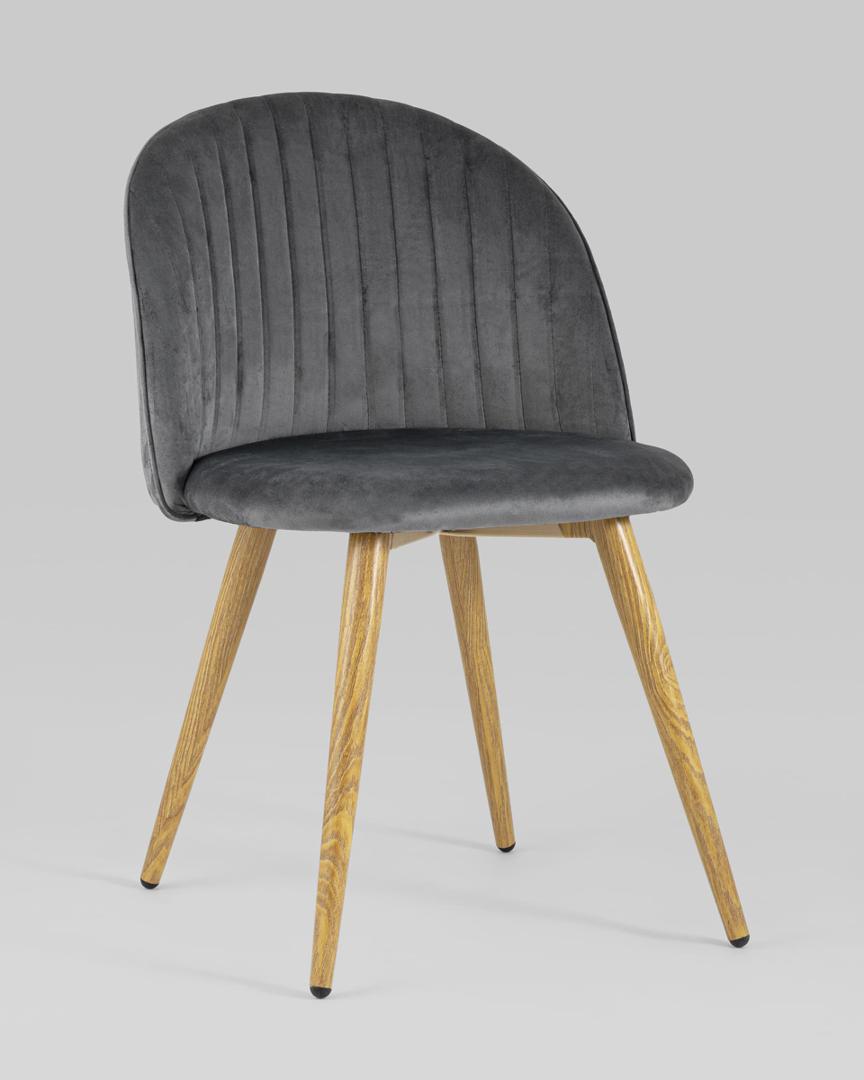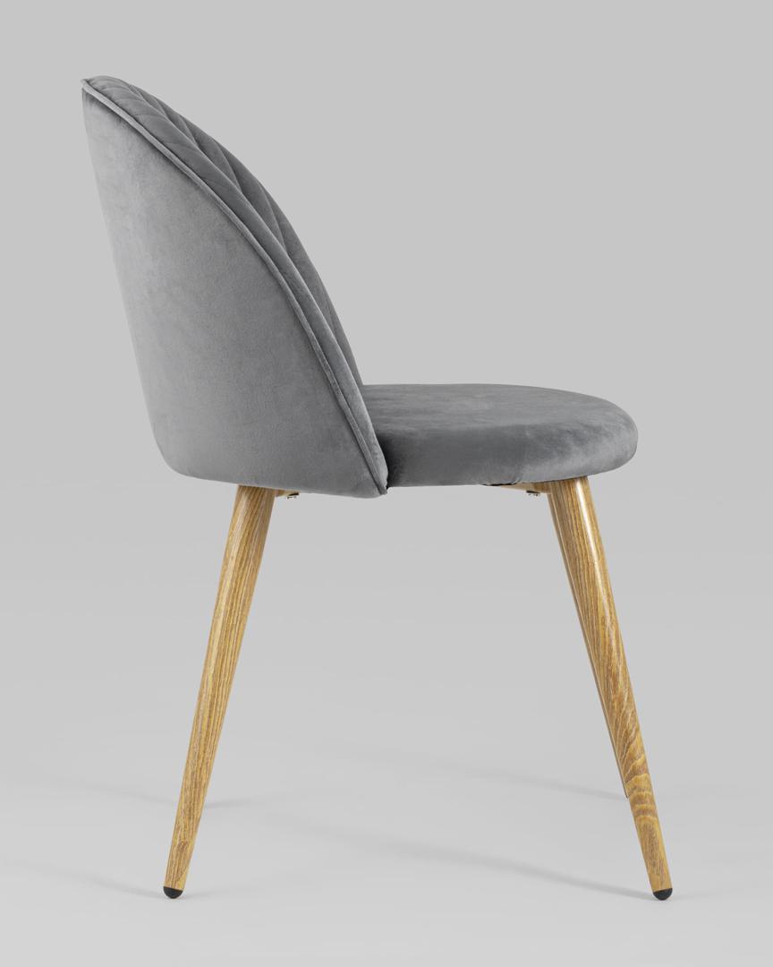 Стул Лион Страйпс серый обивка из велюра спинка с вертикальной прострочкой каркас из оцинкованного металла с принтом под натуральное дерево