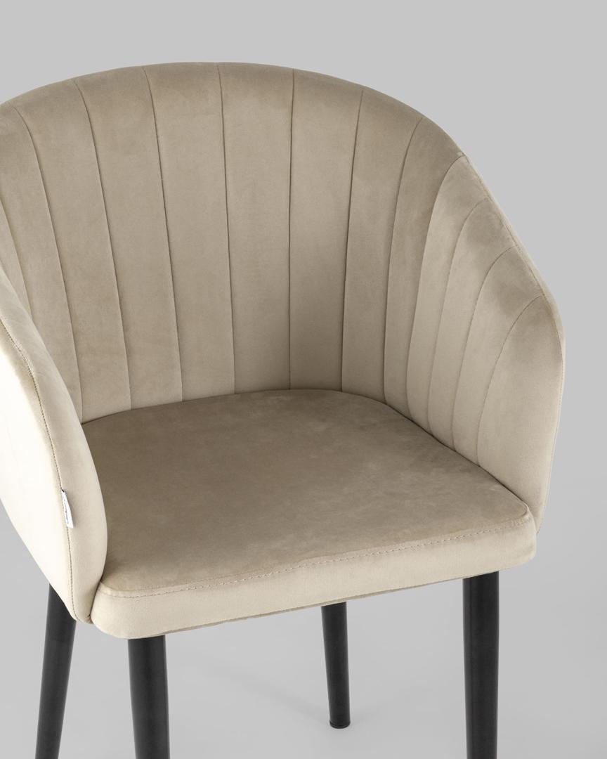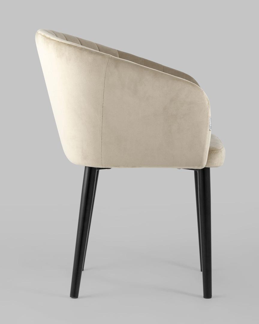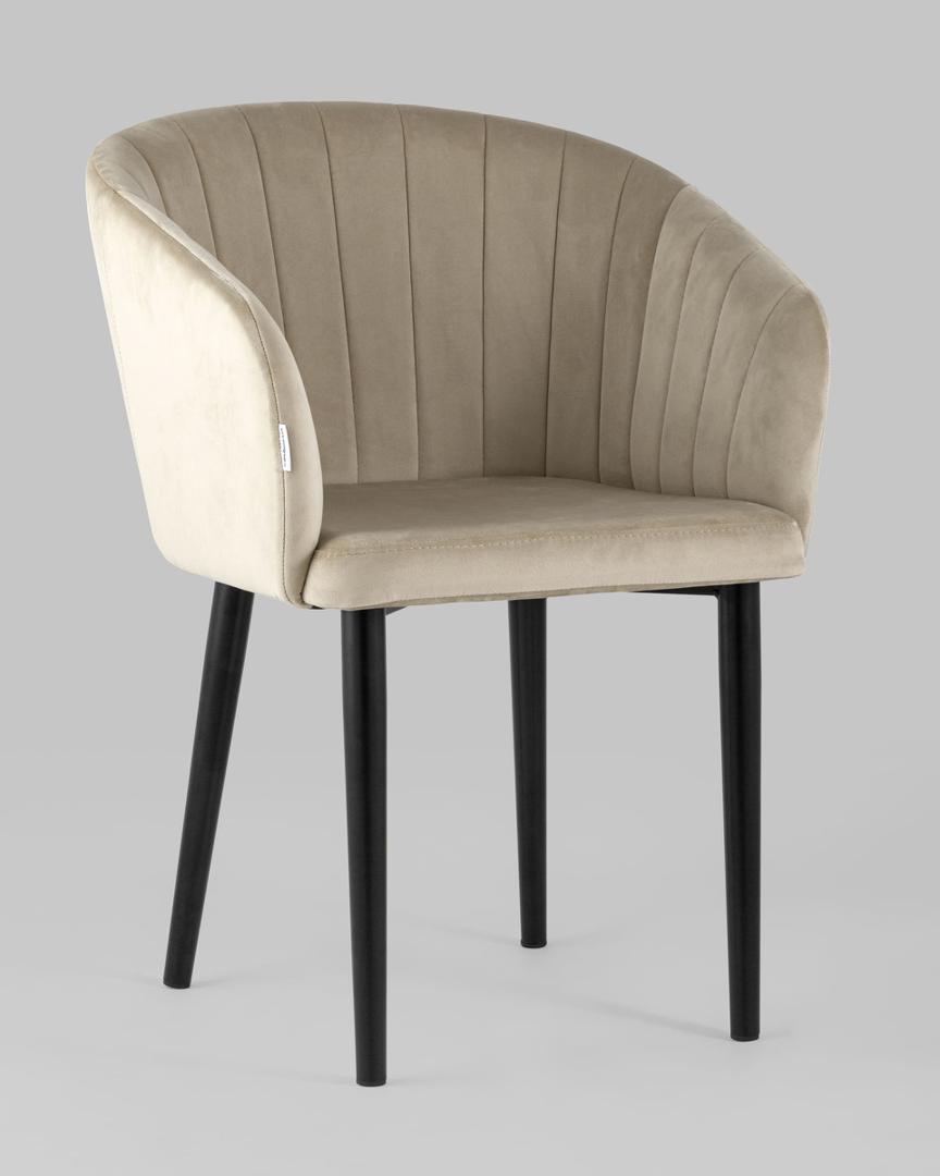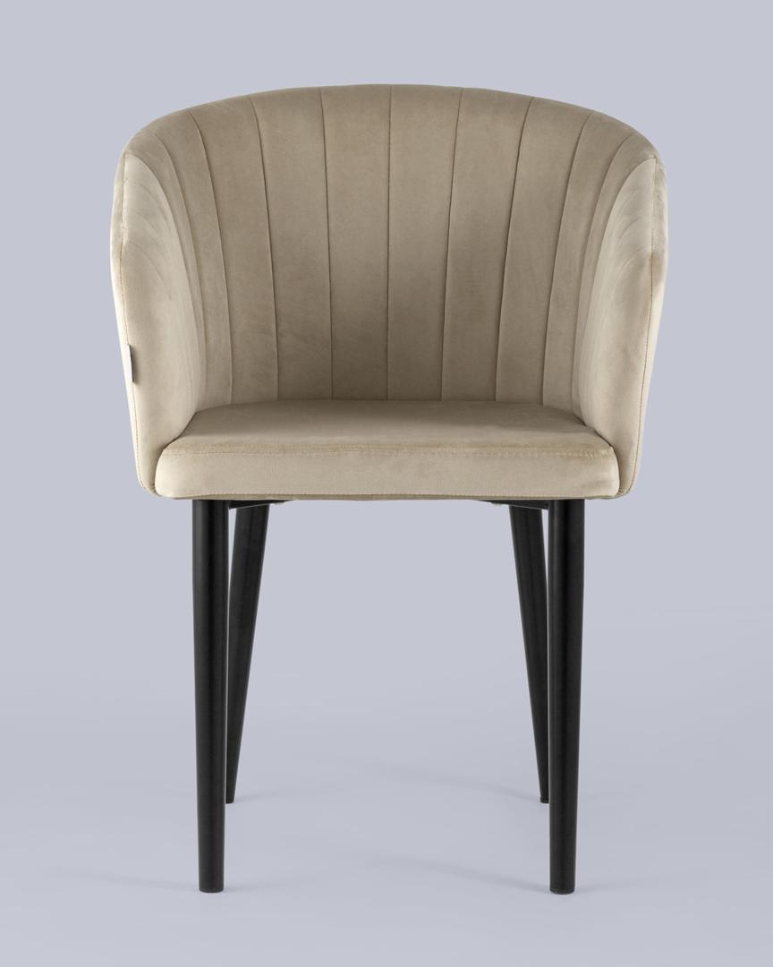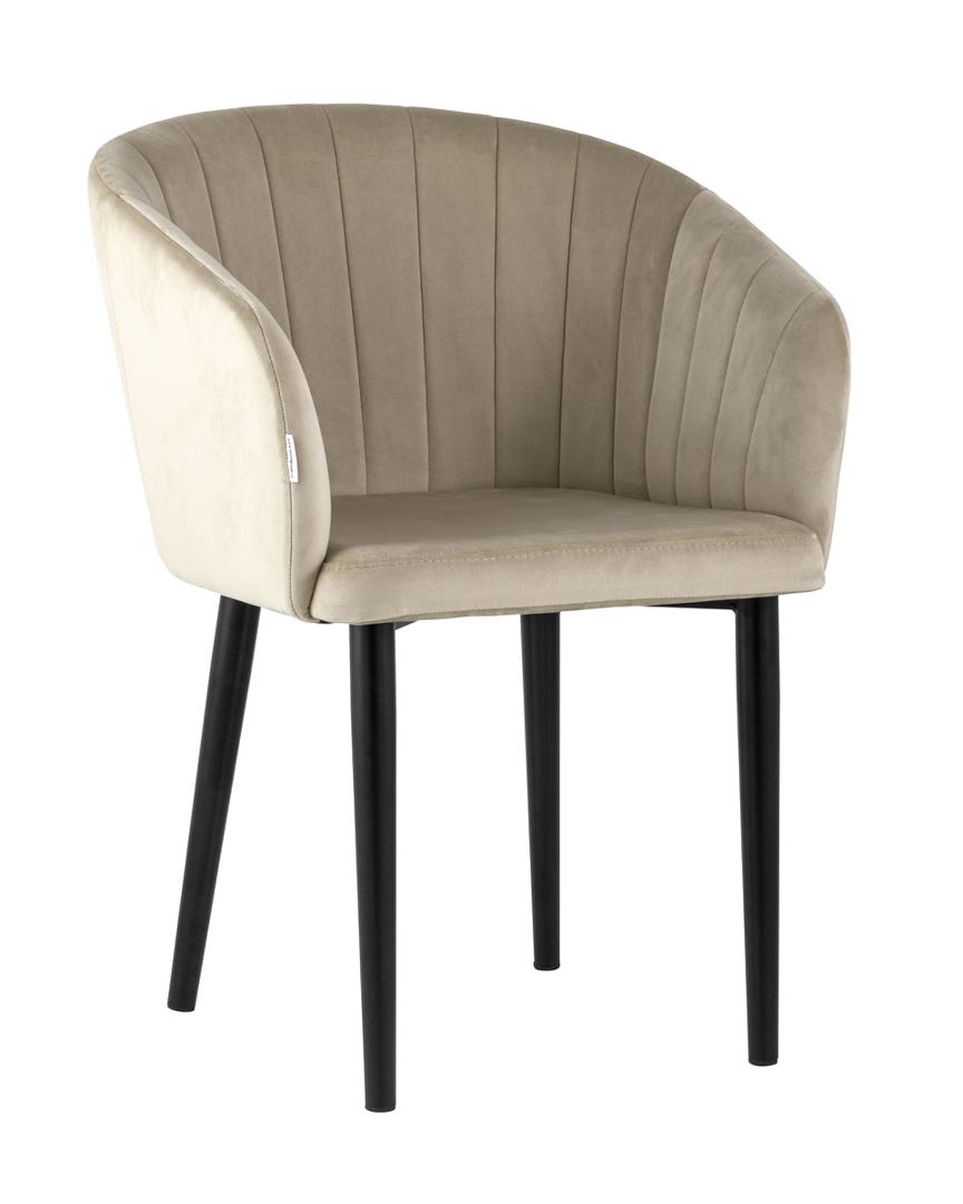 Стул с подлокотниками Нейтон обивка велюр бежевый ножки металл черные