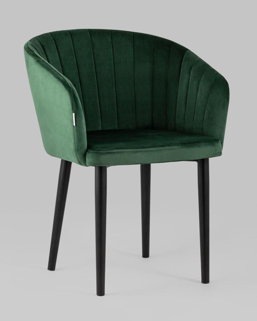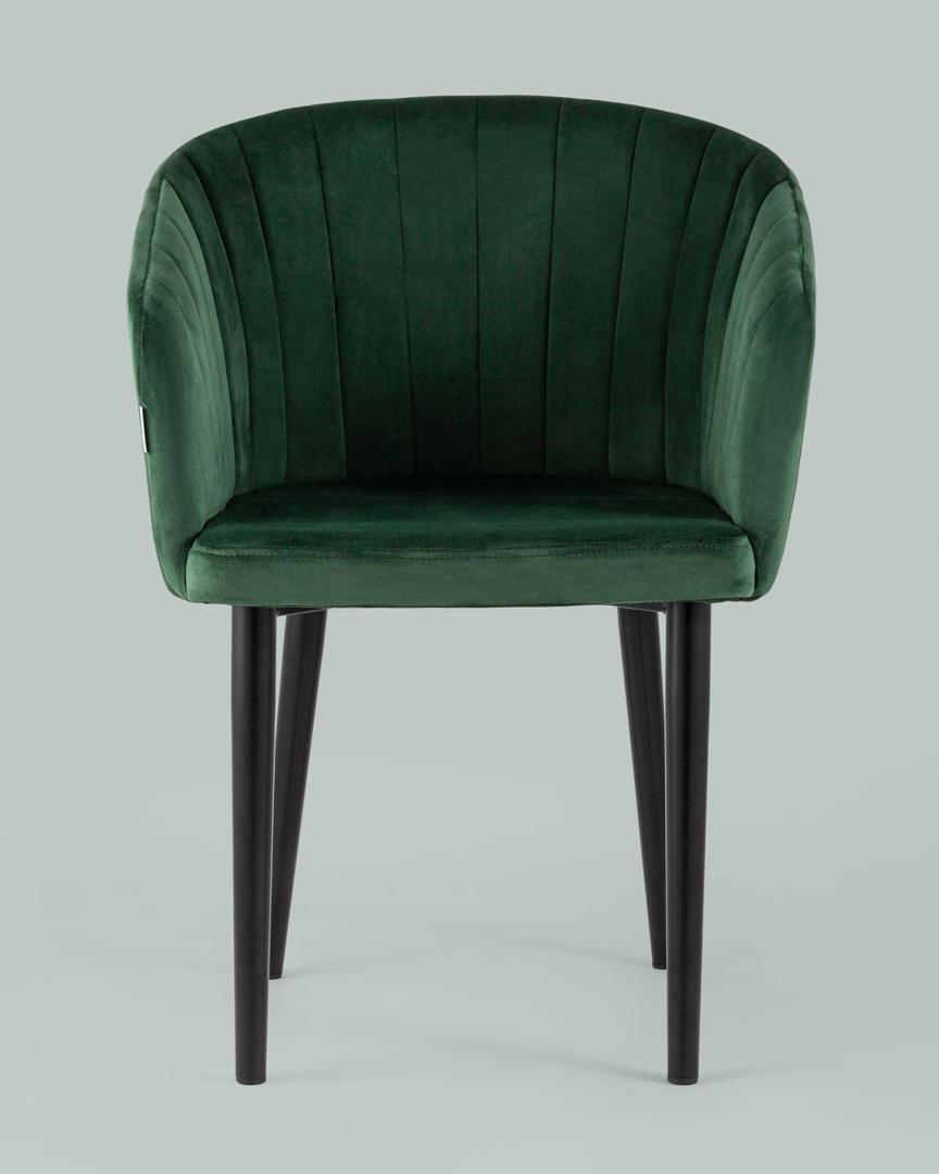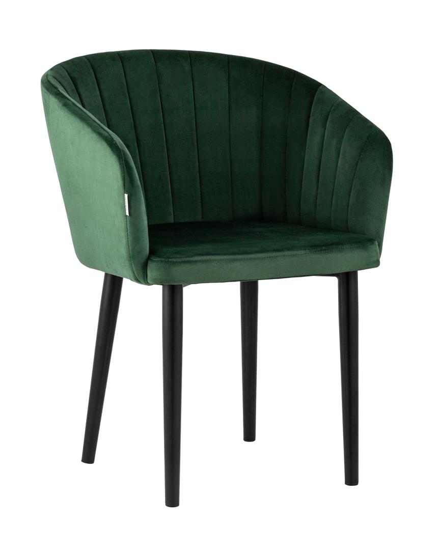 Стул с подлокотниками Нейтон обивка велюр зеленый ножки металл черные