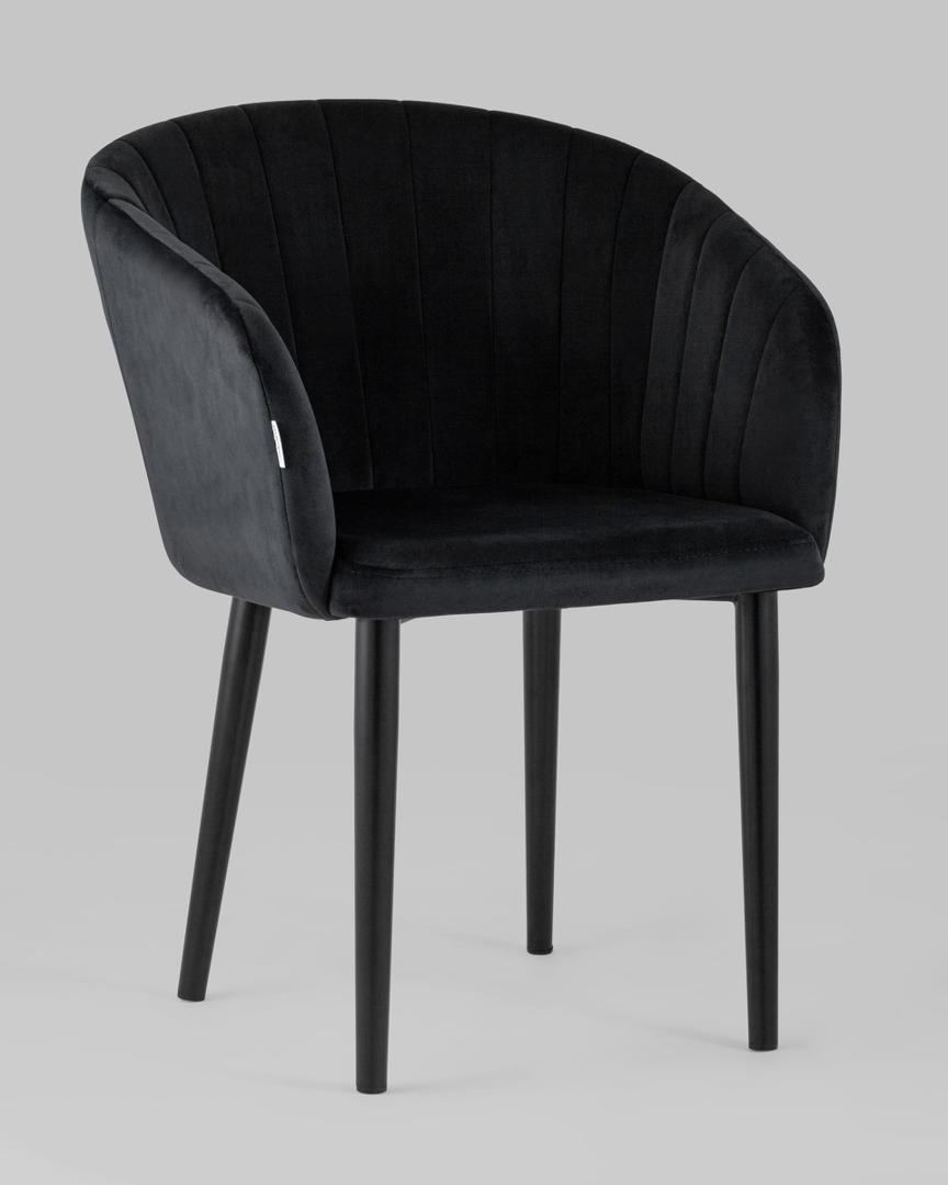 Стул с подлокотниками Нейтон обивка велюр черный ножки металл черные