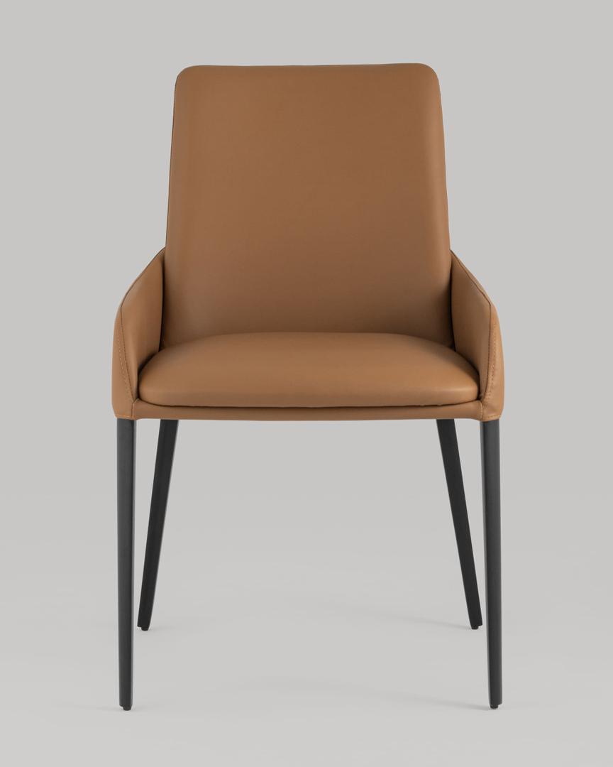 Стул Челси экокожа коричневый обеденный с подлокотниками ножки металл черный