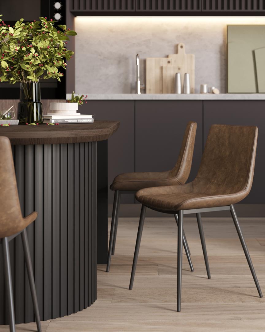Стул кухонный TEXAS мягкая обивка из экокожи, цвет коричневый, ножки черные
