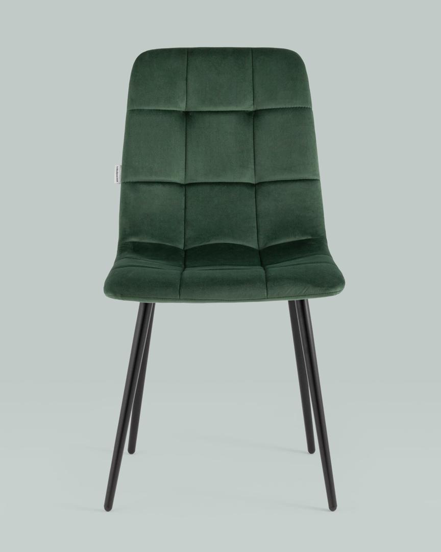 Стул Одди велюр зелёный ножки из металла в черном цвете