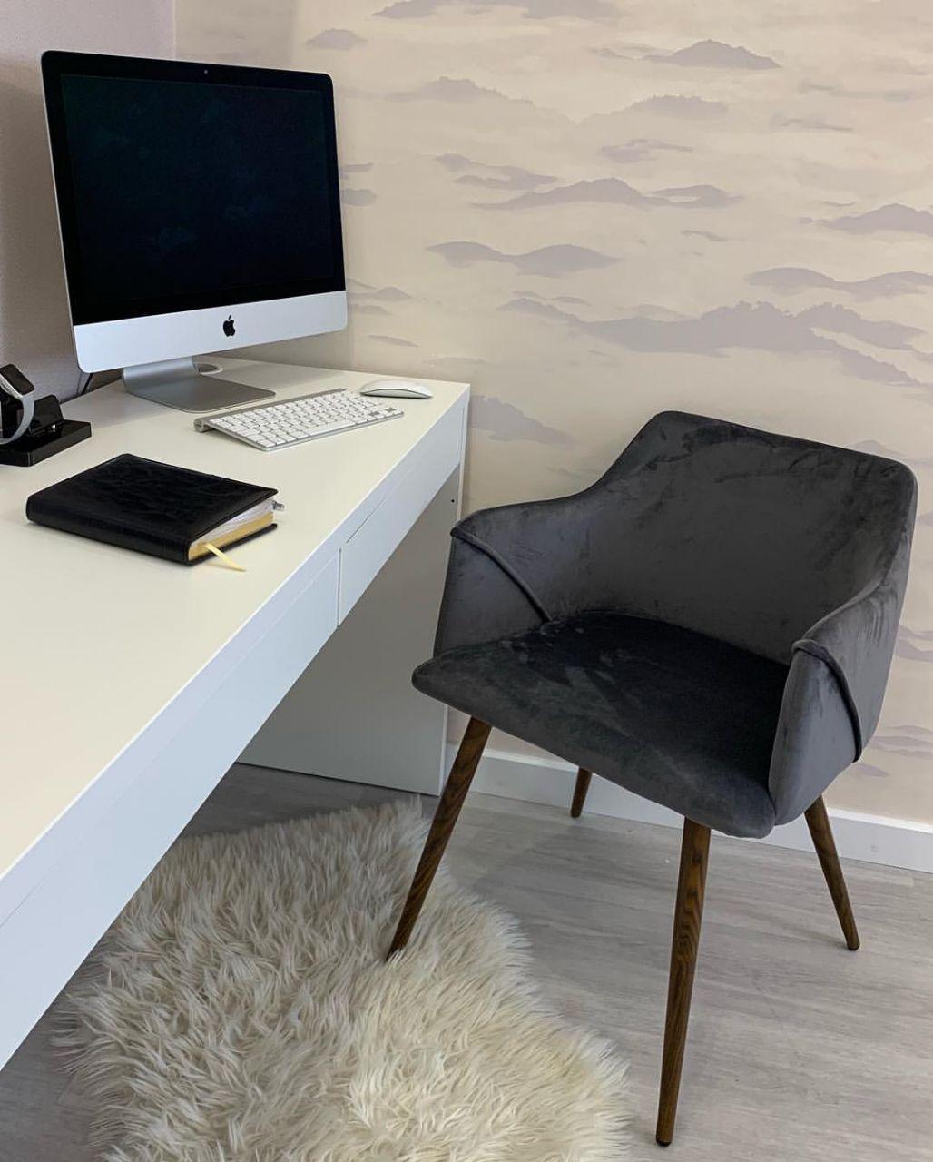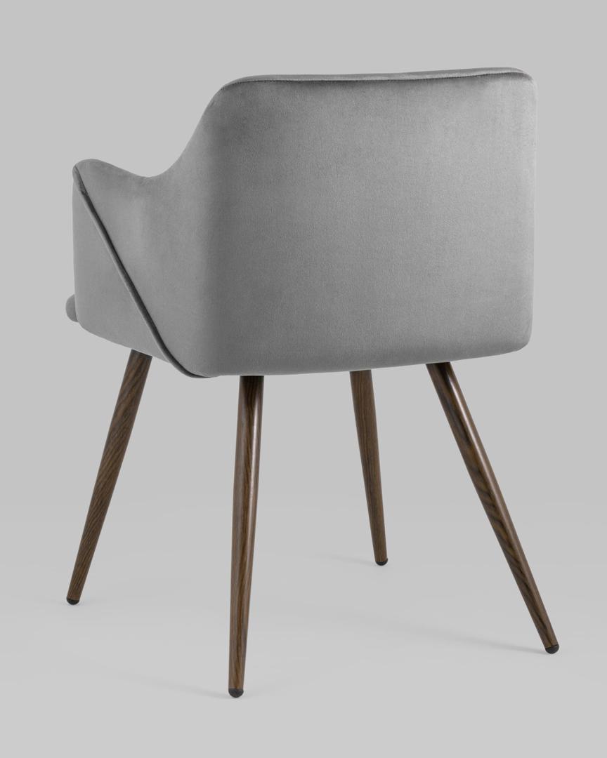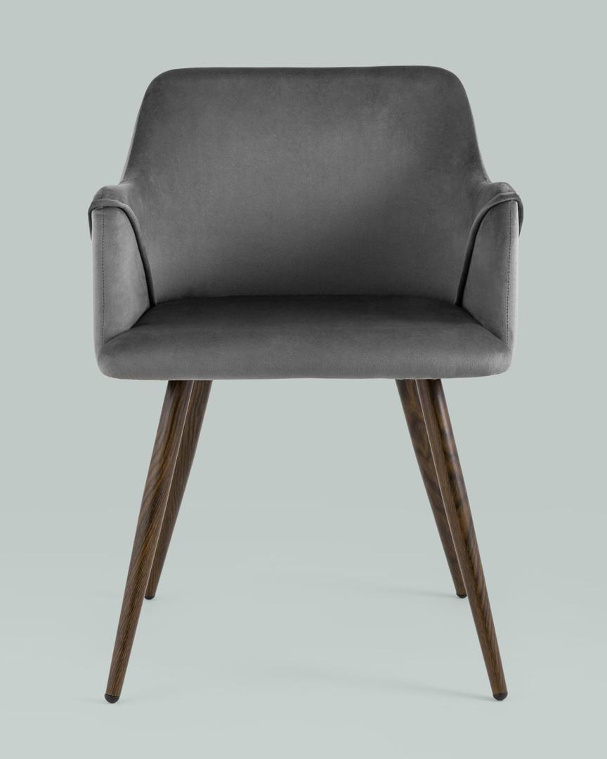 Стул Stool Group Монарх серый, широкая эргономичная спинка, удобные подлокотники, обивка плотная ткань, металлические ножки с принтом под дерево