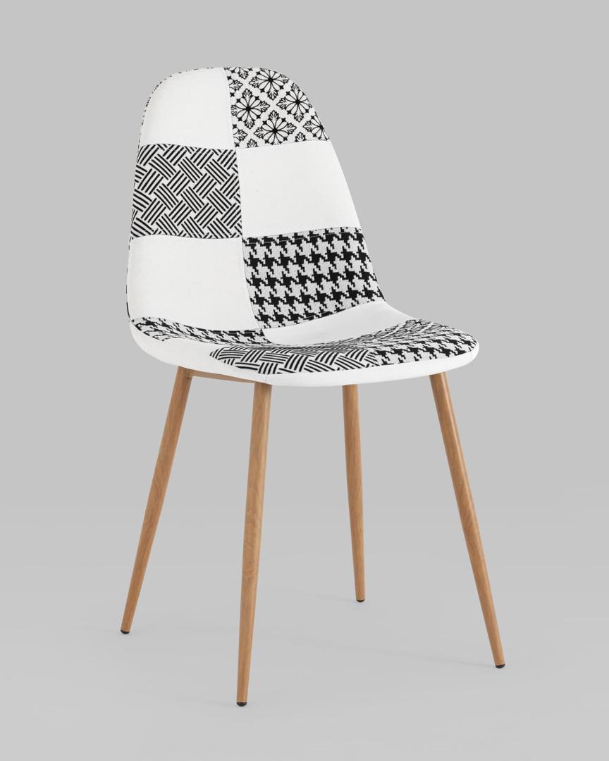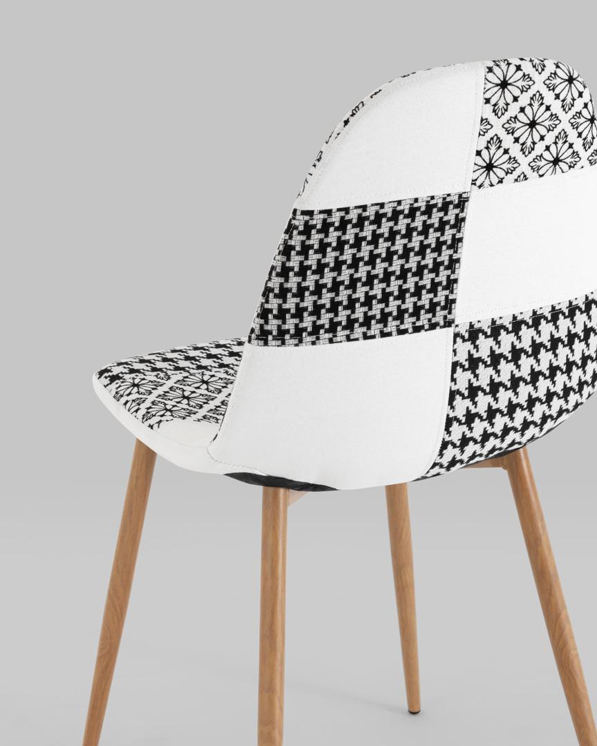 Стул Валенсия SN пэчворк черно-белый, обивка ткань ножки металл с принтом под дерево