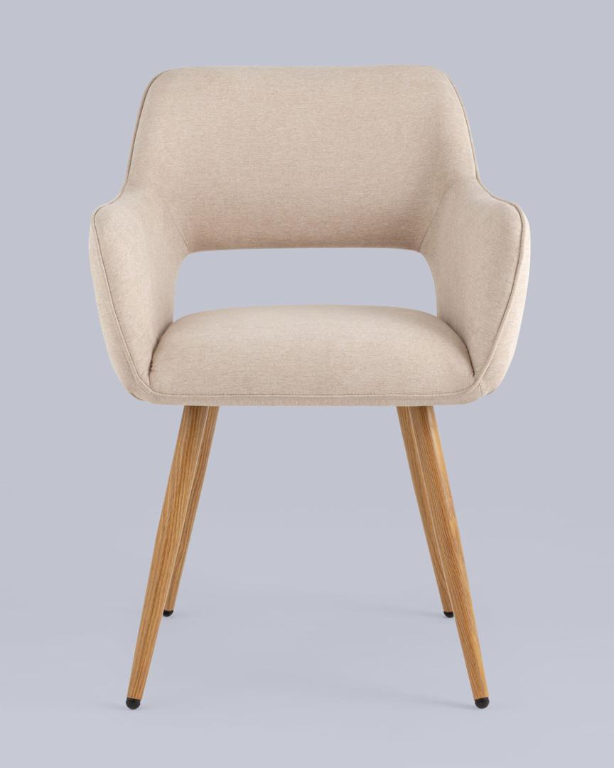 Стул Stool Group Кромвель II бежевый, широкая эргономичная спинка, удобные подлокотники, обивка плотная ткань, металлические ножки с принтом под дерево