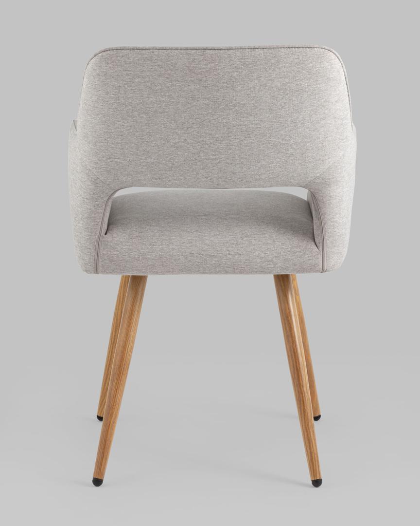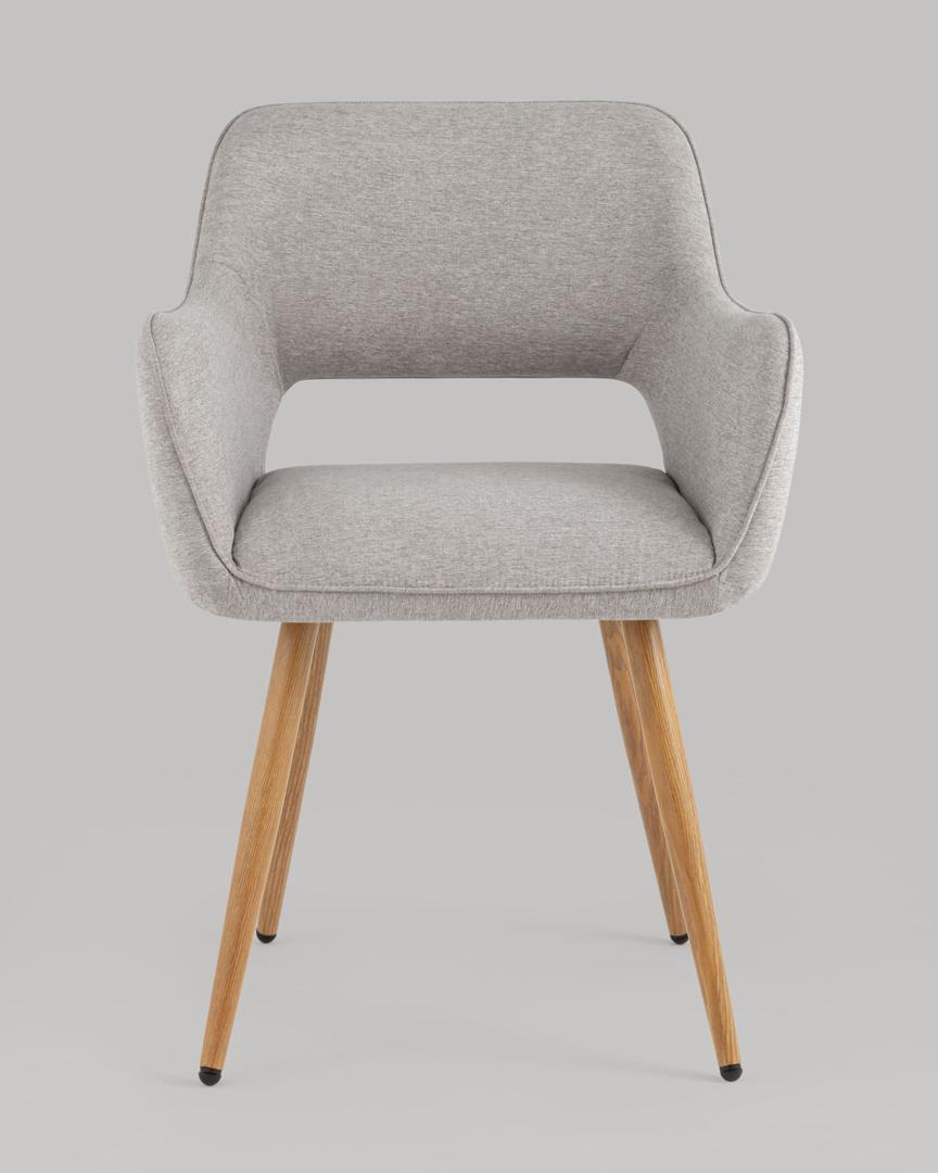 Стул Stool Group Кромвель II серый, широкая эргономичная спинка, удобные подлокотники, обивка плотная ткань, металлические ножки с принтом под дерево