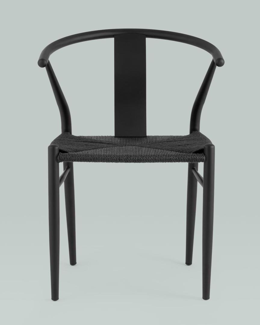 Стул обеденный Wishbone Style черный с сиденьем из джута