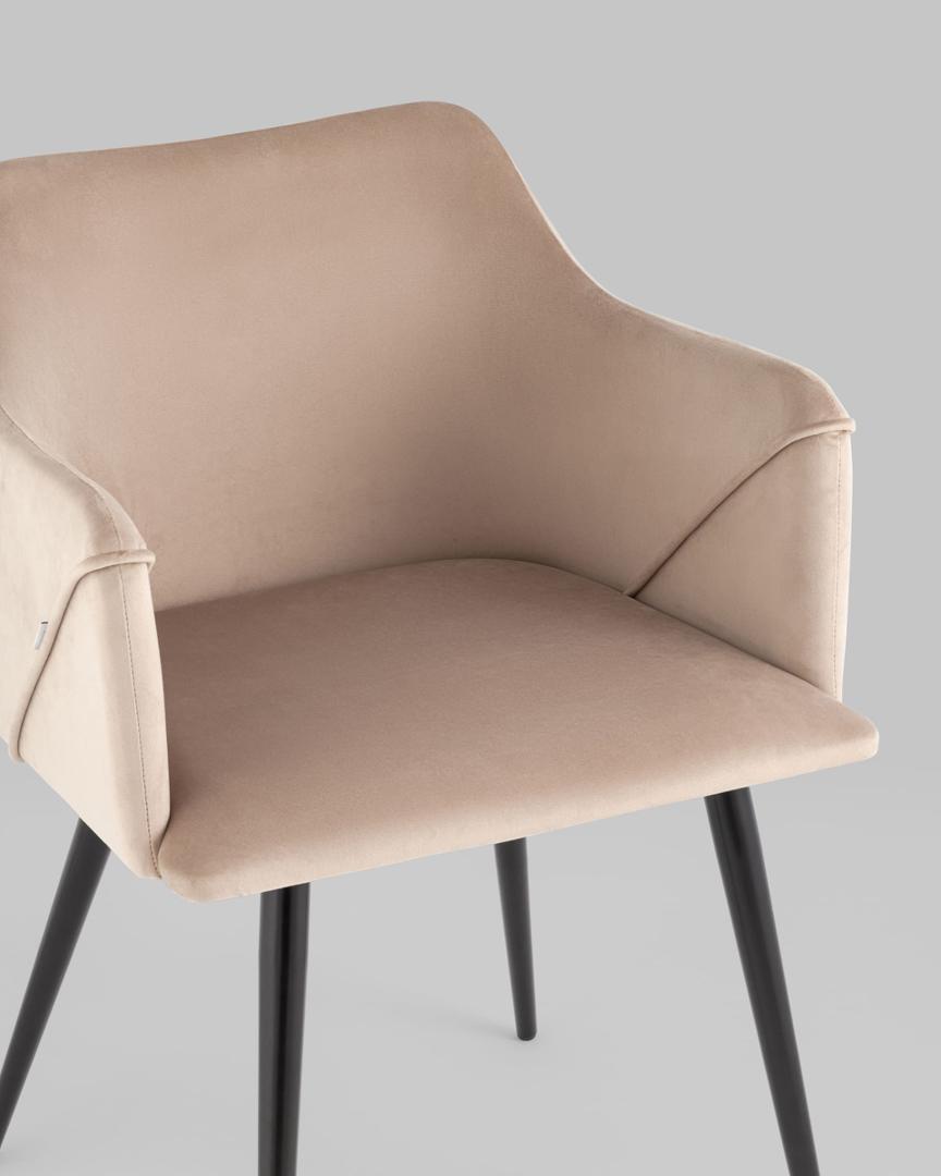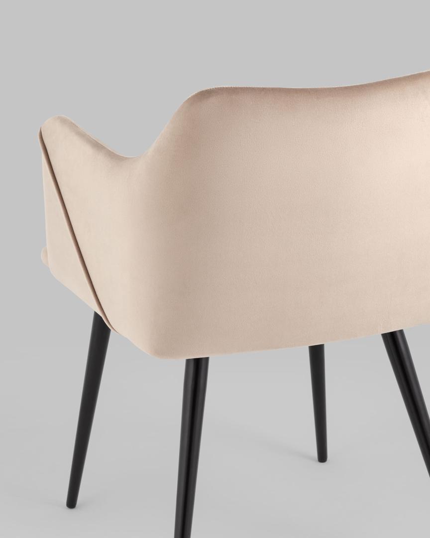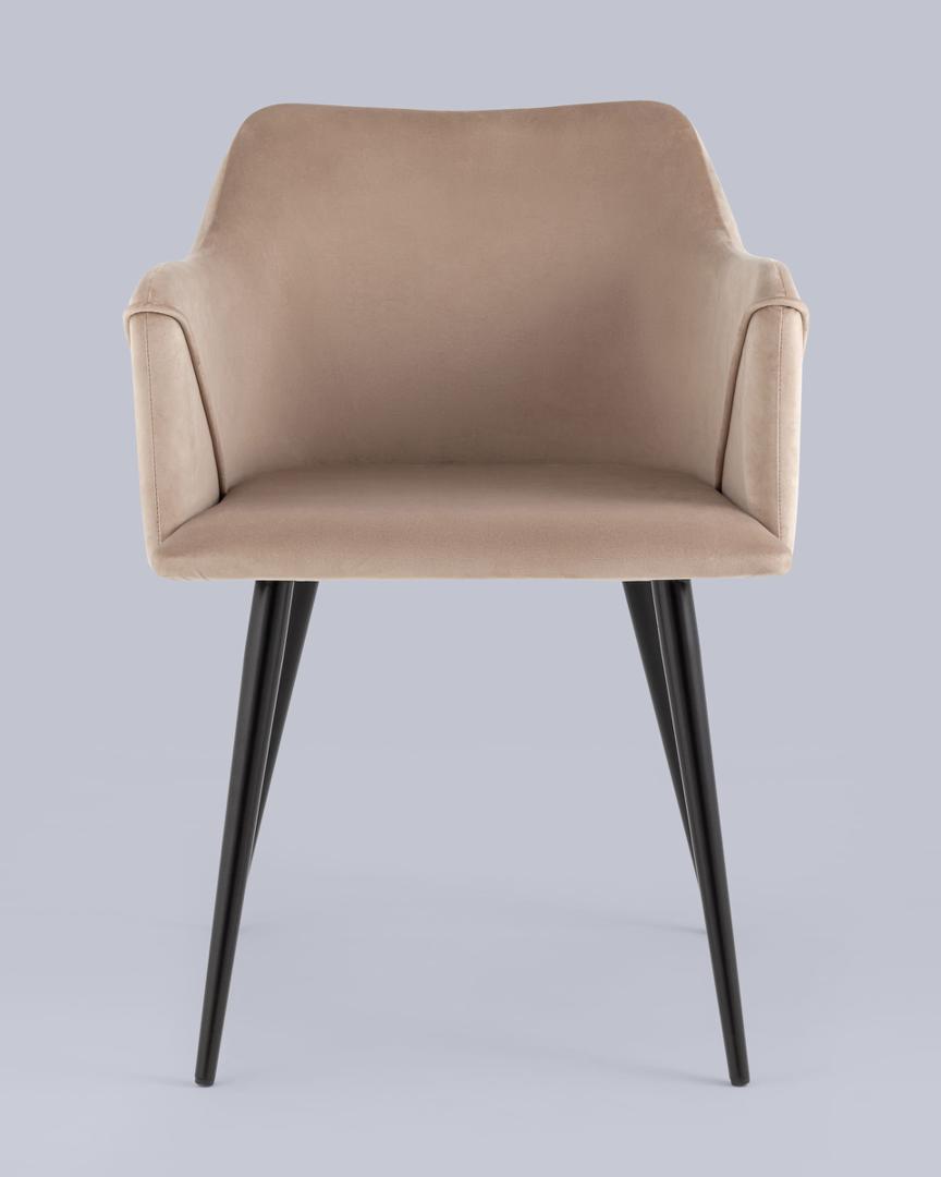 Стул с подлокотниками Джоэл велюр бежевый ножки черные металл