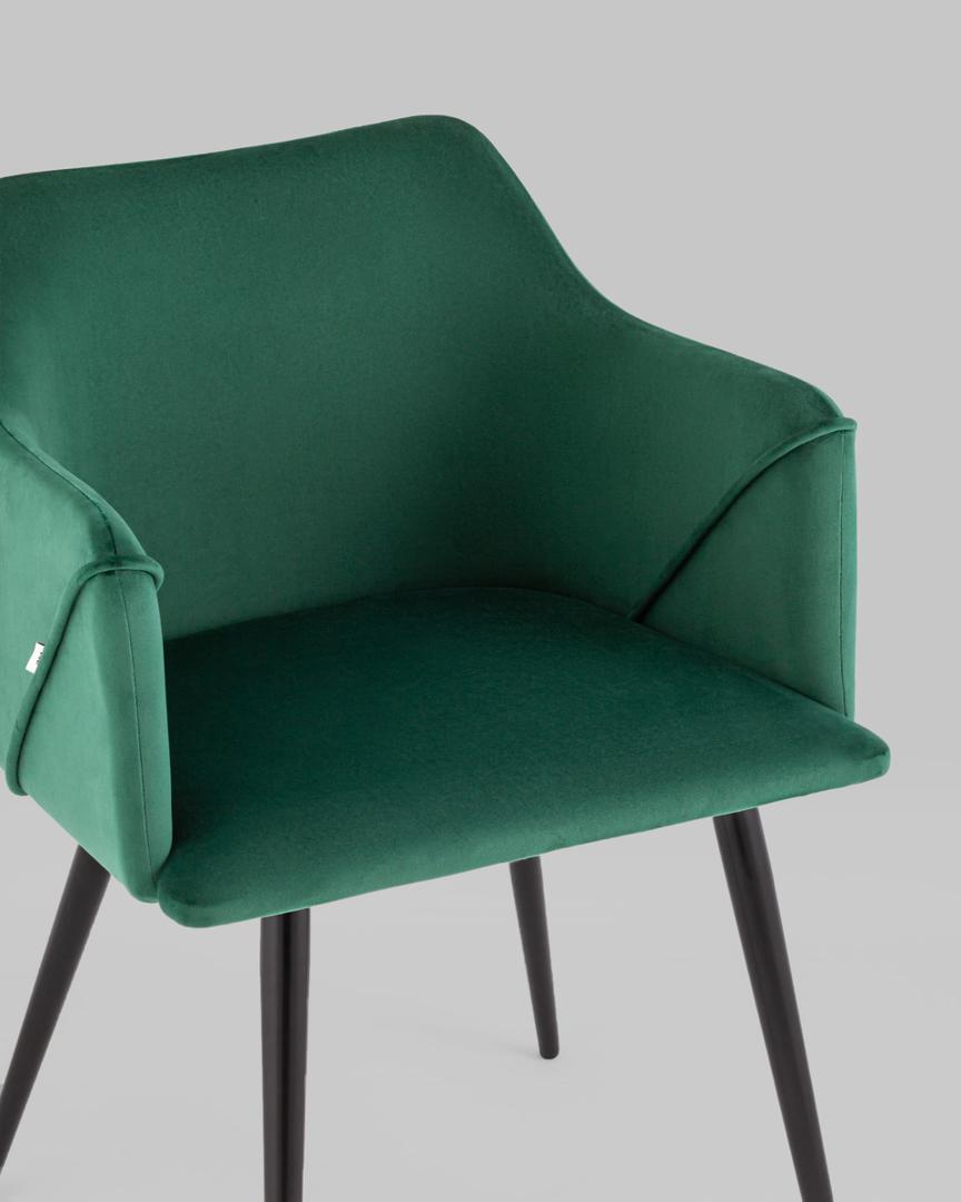 Стул с подлокотниками Джоэл велюр зелёный ножки черные металл