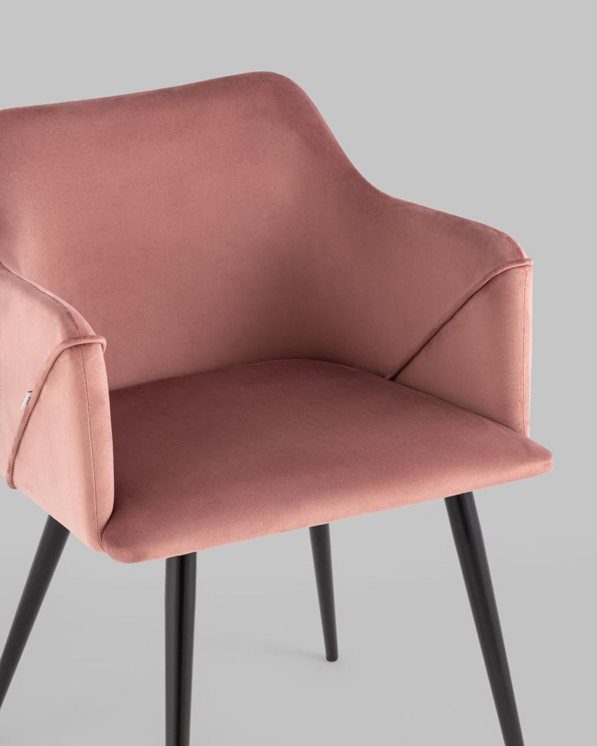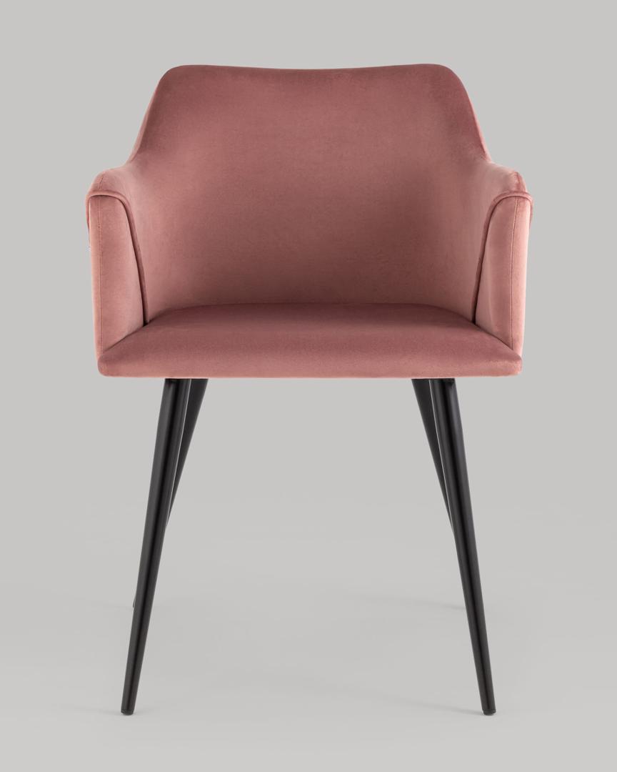Стул с подлокотниками Джоэл велюр пыльно-розовый ножки черные металл