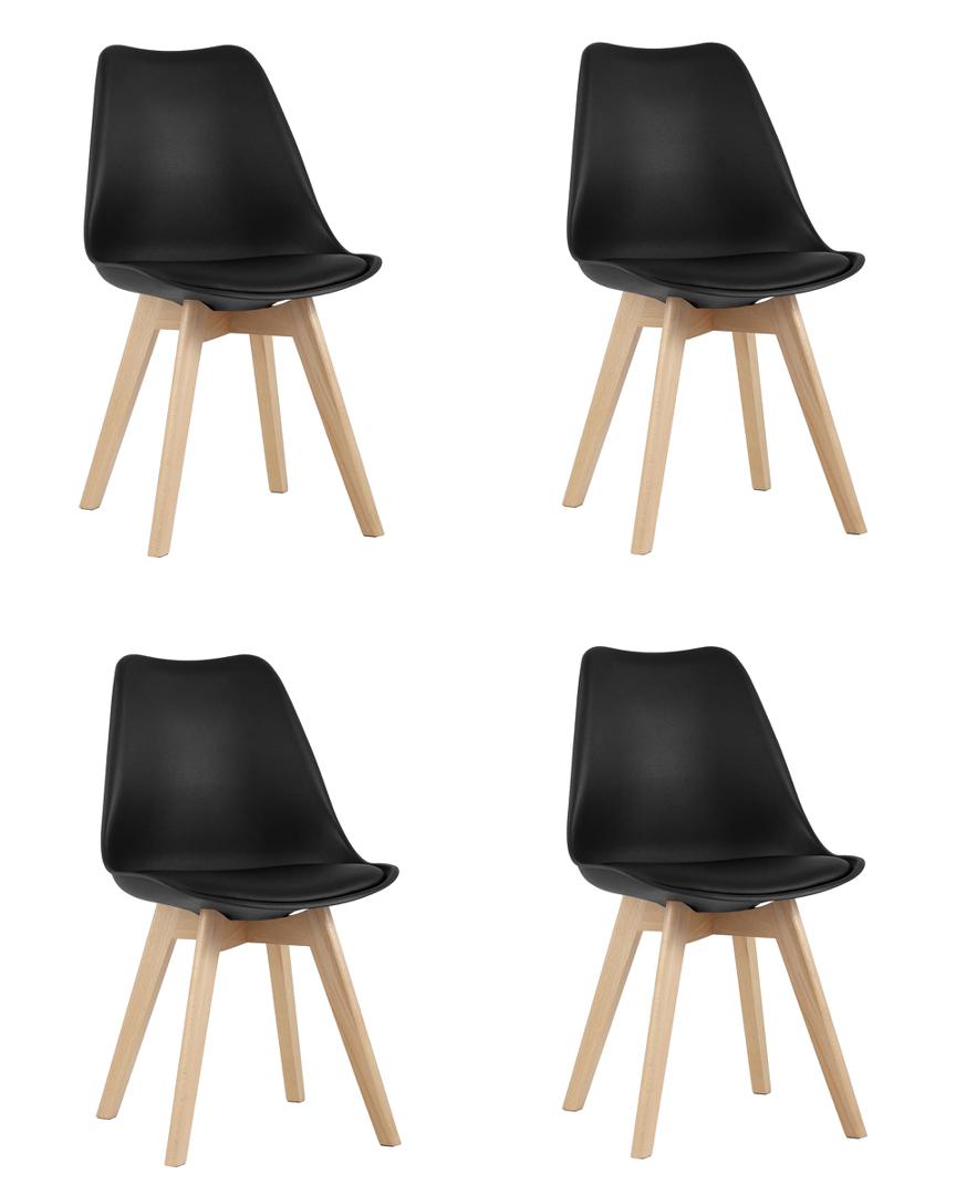 Комплект из четырех стульев FRANKFURT NEW черный, сиденье из сочетания пластика и экокожи, ножки деревянные