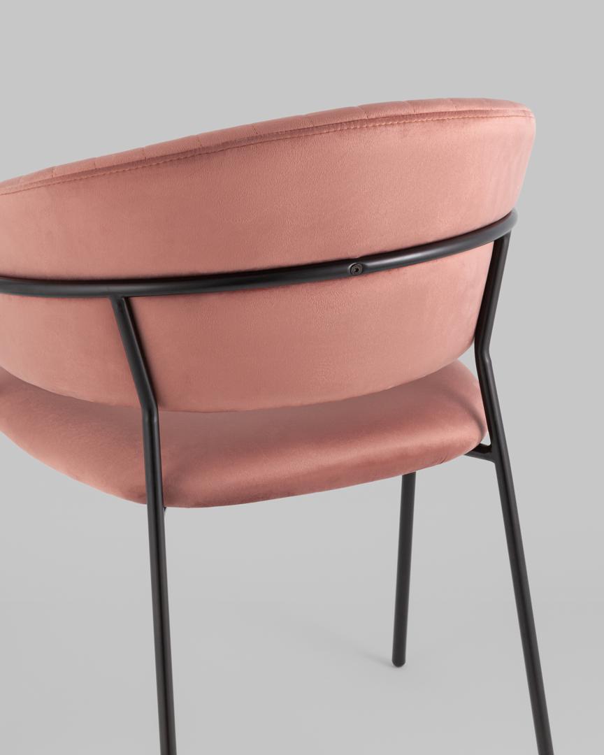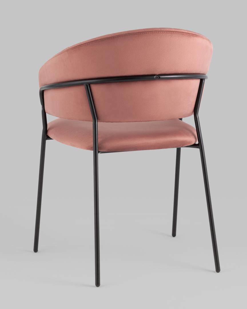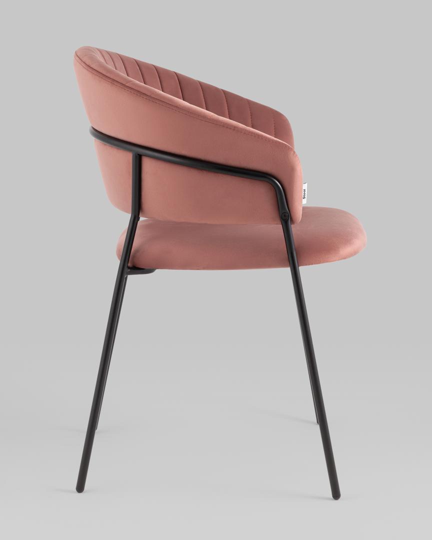 Стул с подлокотниками Бруно велюр пыльно-розовый ножки черные металл