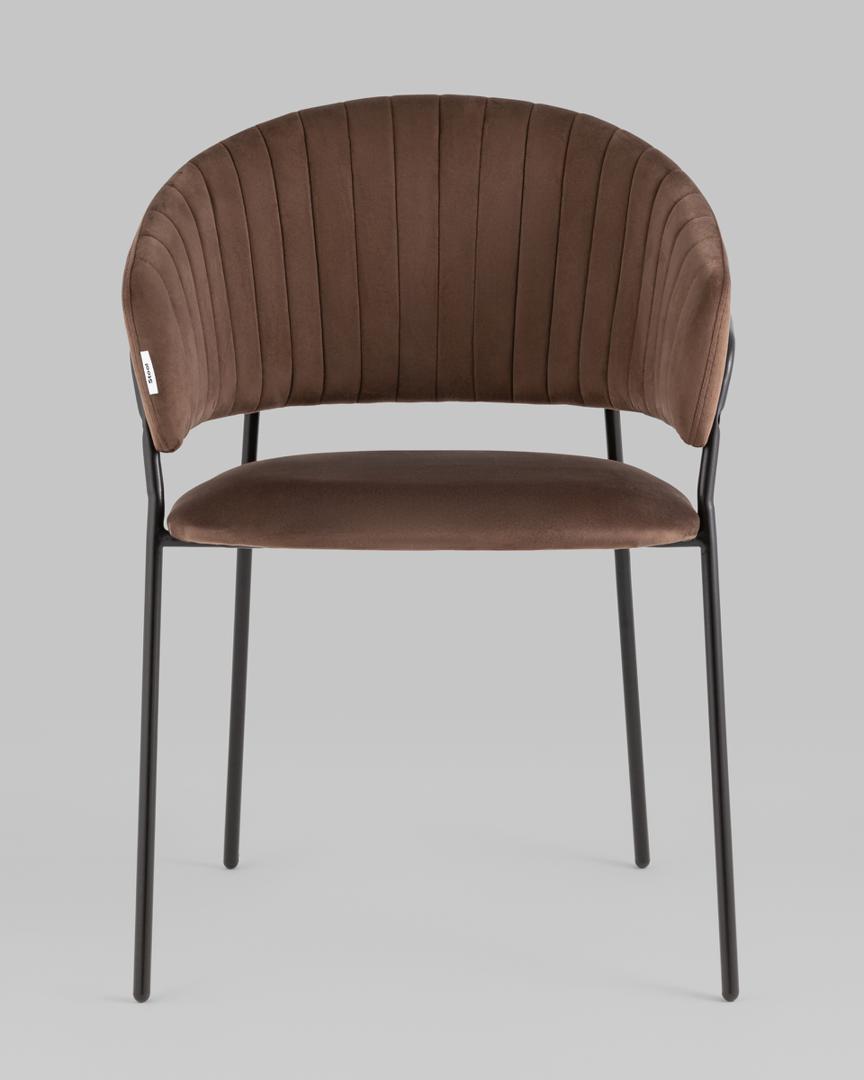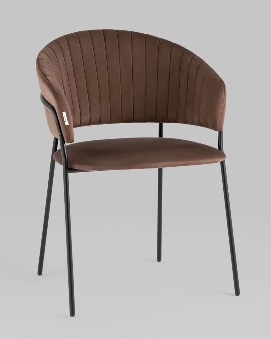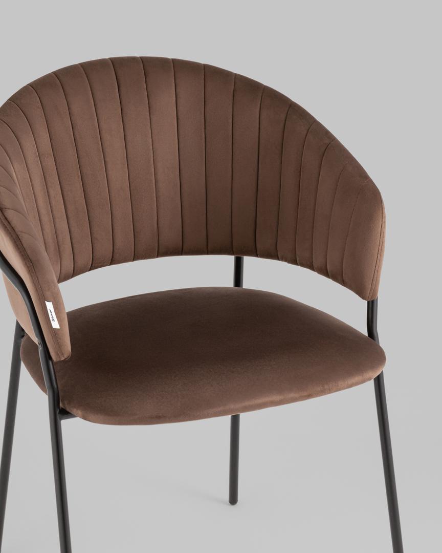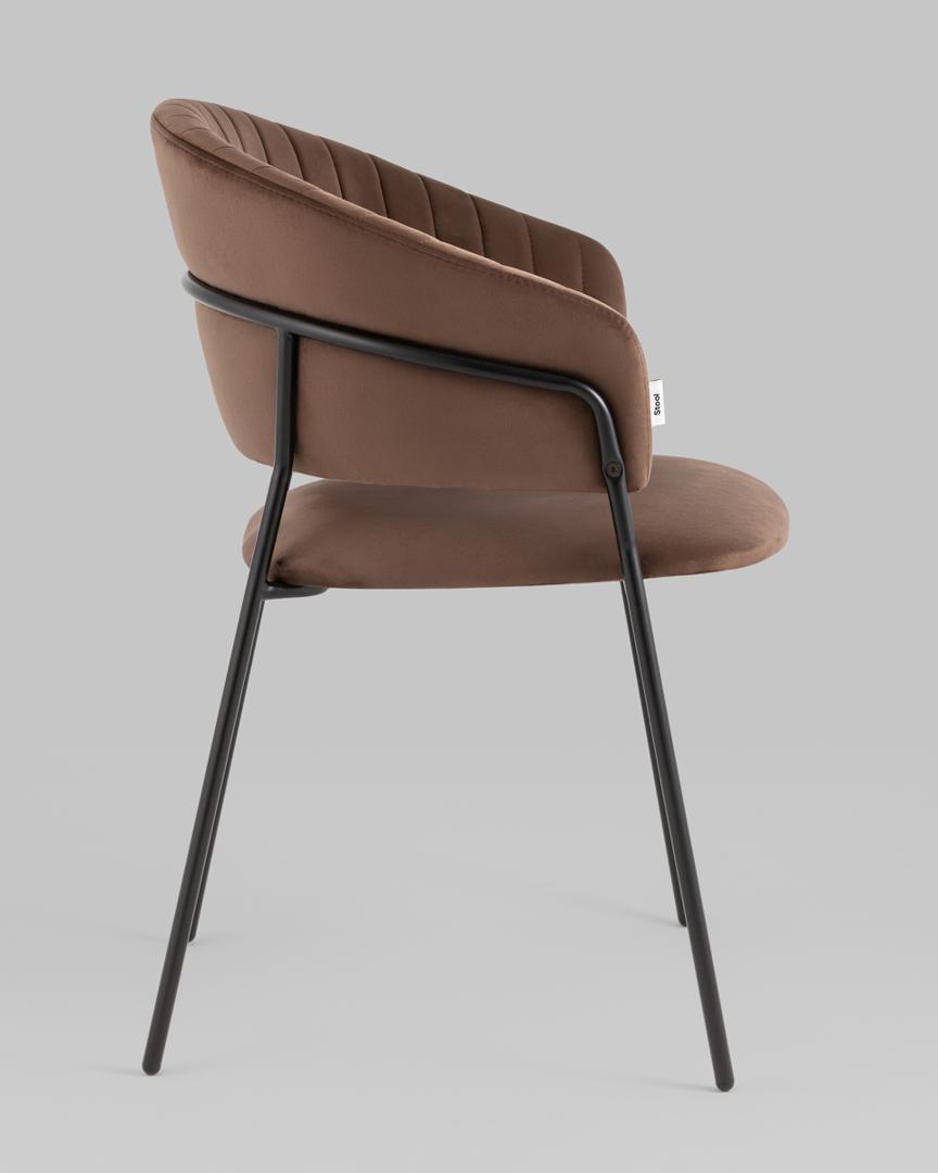 Стул с подлокотниками Бруно велюр коричневый ножки черные металл