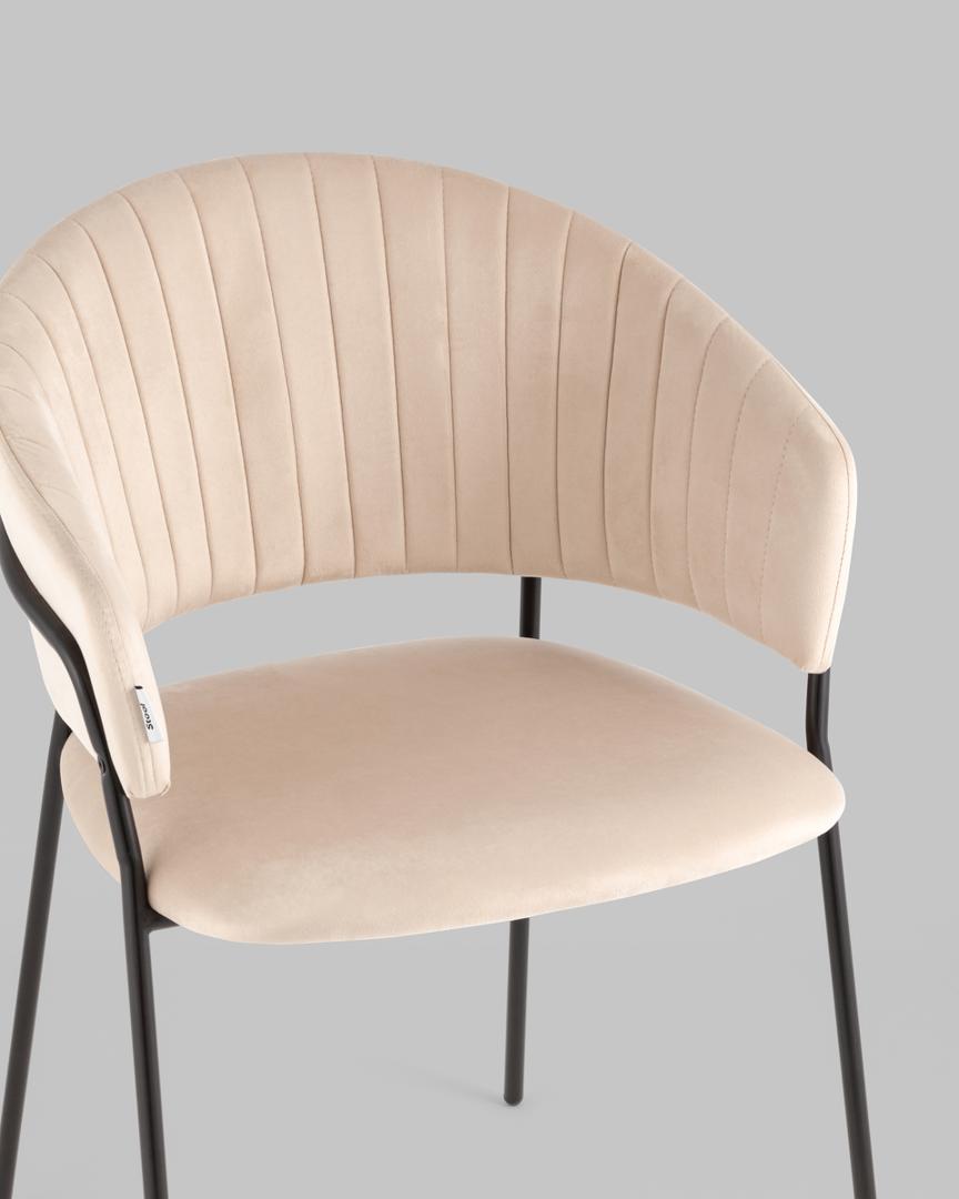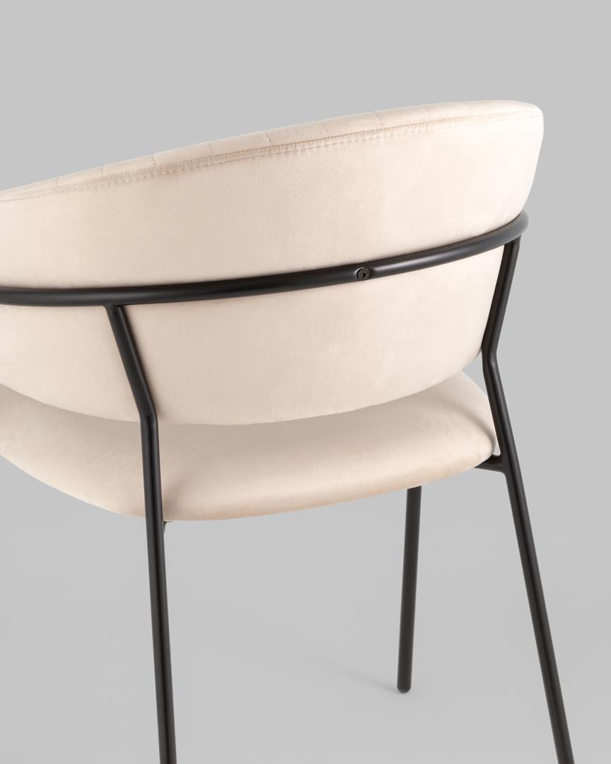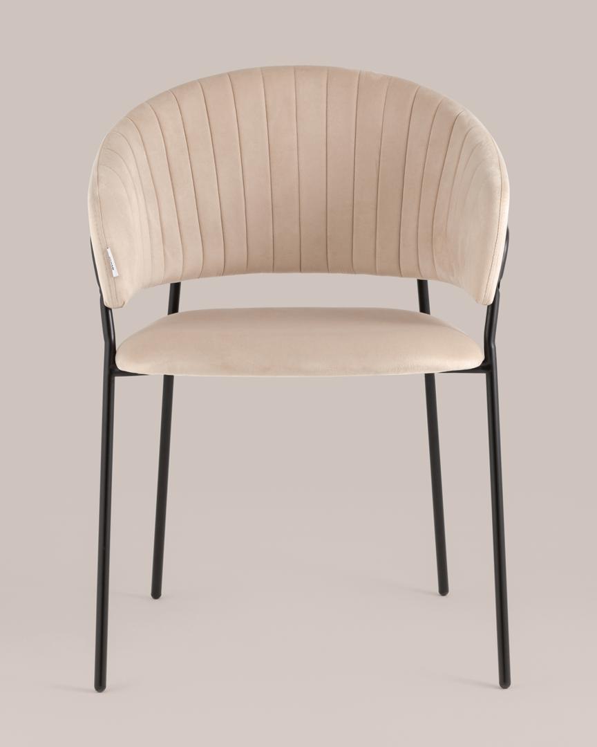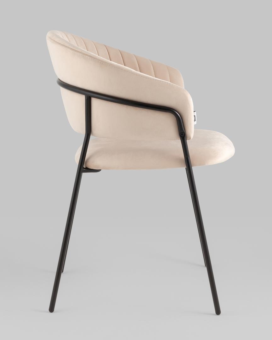 Стул с подлокотниками Бруно велюр кремовый ножки черные металл
