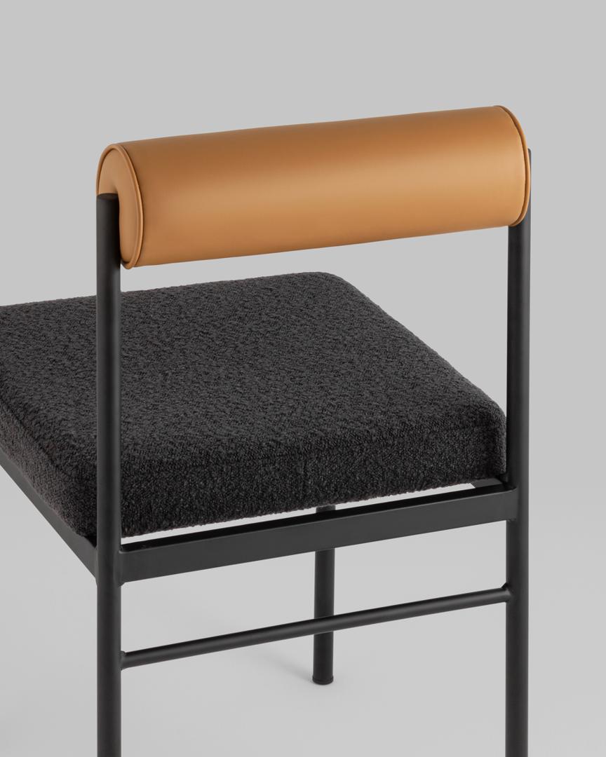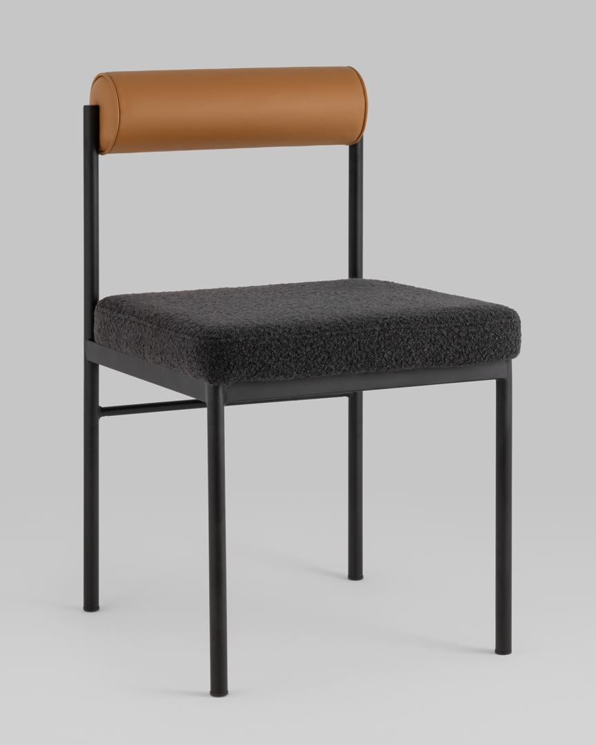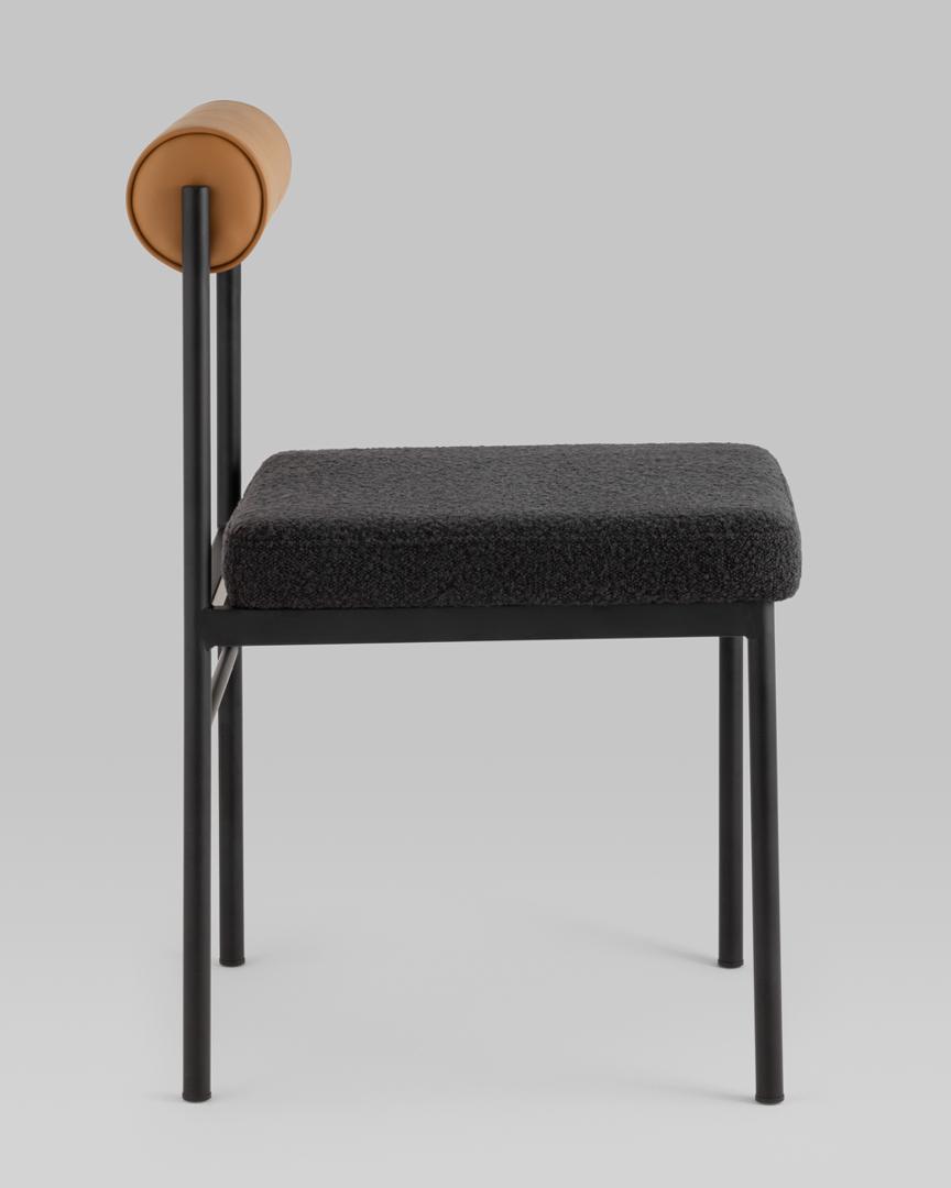 Стул обеденный Балла темно-серый, сиденье ткань букле, спинка в форме валика экокожа