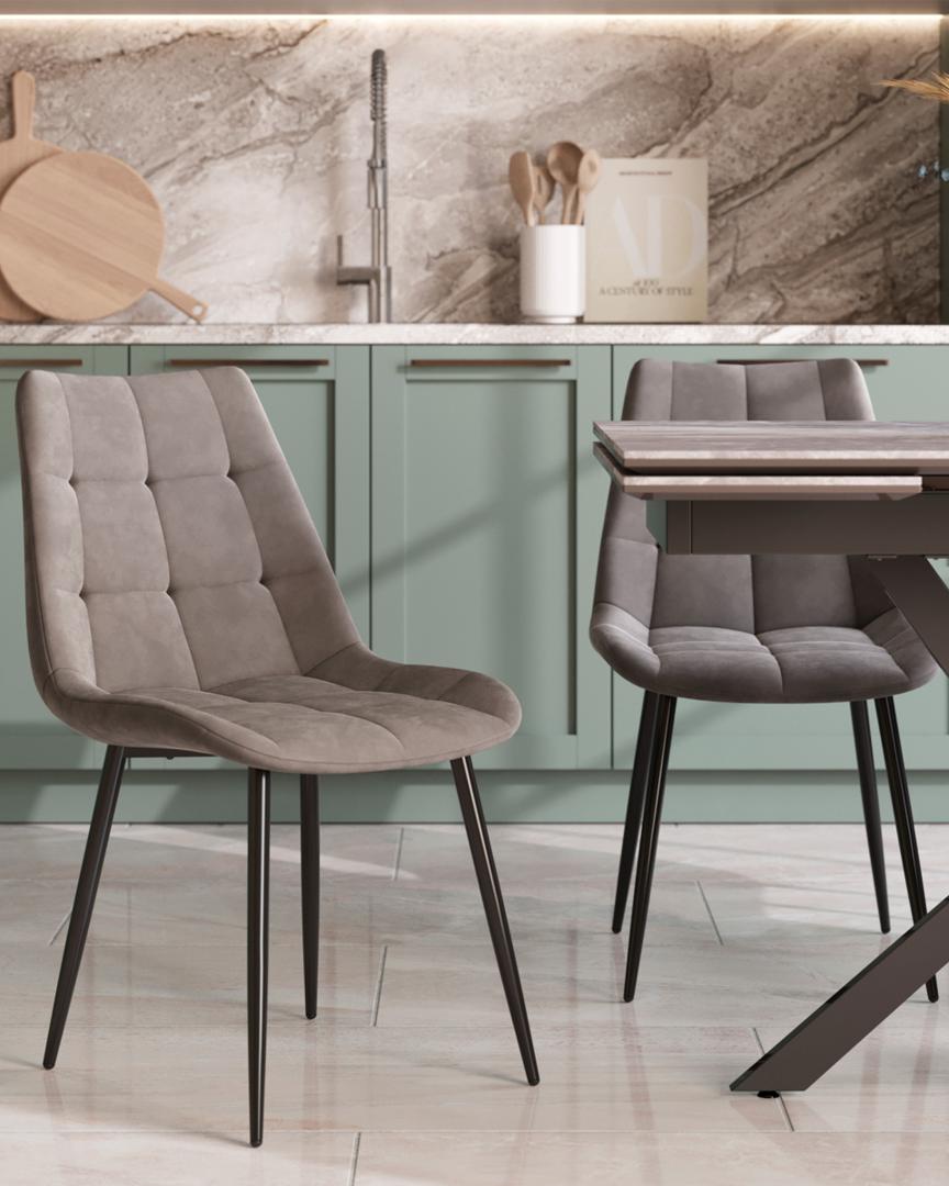 Кухонный стул в мягкой обивке из велюра без подлокотников. Анатомическая форма сиденья обеспечивает удобство, а декоративная стяжка придает объём и защищает от образования вмятин. Металлические ножки с крестовидным каркасом выдерживают значительные нагрузки. Подпятники ножек не испортят напольное покрытие и предохраняют от скольжения. Лаконичный дизайн украсит любой кухонный интерьер.Замок на спинке стула несёт декоративный характер и не предназначен для снятия обивки.