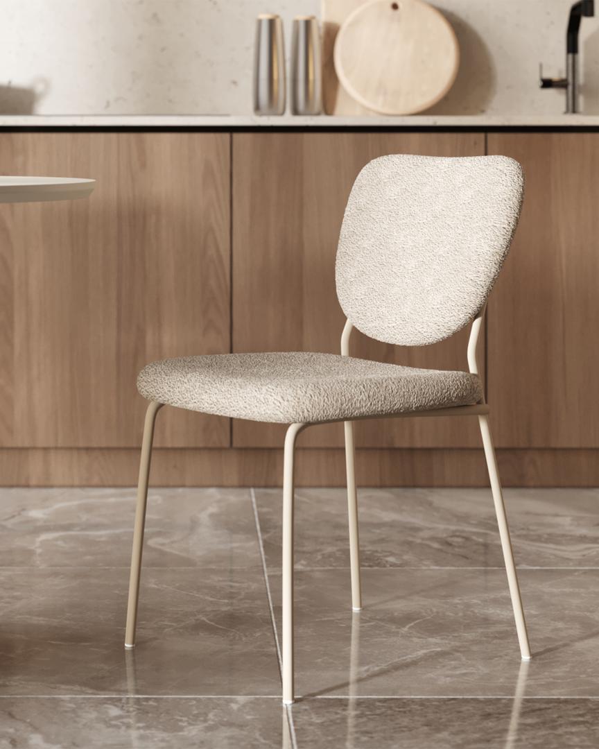 Стул обеденный Gigi букле серо-бежевый кремовые ножки
