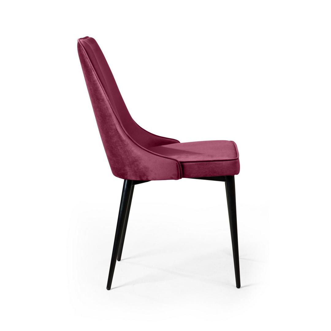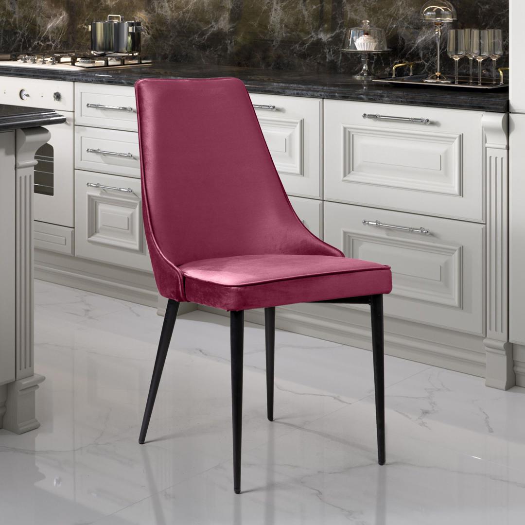 strong*Оттенок может выглядеть по-разному в зависимости от направления ворса./strong Стул Oliver пожалуй самая элегантная, лаконичная модель. Сочетание плавных линий и бархатистой обивки очерчено кантом в тон. Наличие Oliver пурпурного цвета в бархатной обивке придаст вашему интерьеру тепло и уют, а также создаст ощущение роскоши. Обивка Мягкий бархатистый микровелюр, высококачественный материал с повышенной износостойкостью. Он прост в уходе и не потеряет достойный вид долгое время. Ткань прочная, специально предназначена для ежедневного использования дома или в заведениях общественного типа (кафе, рестораны). Цвет: пурпурный Пурпурный - считается умиротворяющим, элегантным и изысканным цветом. Многие разновидности фиолетового цвета способствуют улучшению настроения, пробуждают творческие силы, помогают сосредоточиться дают возможность успокоиться и снять стресс. Каркас Надежный каркас – основа безопасного и спокойного отдыха. В модели стула Oliver устойчивость и максимальная безопасность обеспечена металлическим каркасом, благодаря которому вы можете быть уверены в долгом сроке службы стула вне зависимости от условий эксплуатации. Наполнитель В качестве наполнителя используется пенополиуретан высокой плотности. Даже при длительном использовании он не теряет форму и не деформируется. Такое наполнение гарантирует долгий срок службы изделия, что особенно важно для коммерческого использования (при эксплуатации в сегменте HоReCa). Ножки Изюминка стула Oliver – невероятно тонкие металлические ножки черного матового цвета (могут быть белые), излишне скошенные назад, как часть дизайнерской задумки. На ножках предусмотрены специальные пластиковые накладки, которые придают стулу дополнительную устойчивость и защищают пол от царапин. Гарантия Тщательная проверка качества изделий осуществляется на всех этапах производства: от подбора материалов и комплектующих до проверки готового изделия перед отправкой. На все изделия Top concept мы предоставляем гарантию 18 месяцев.