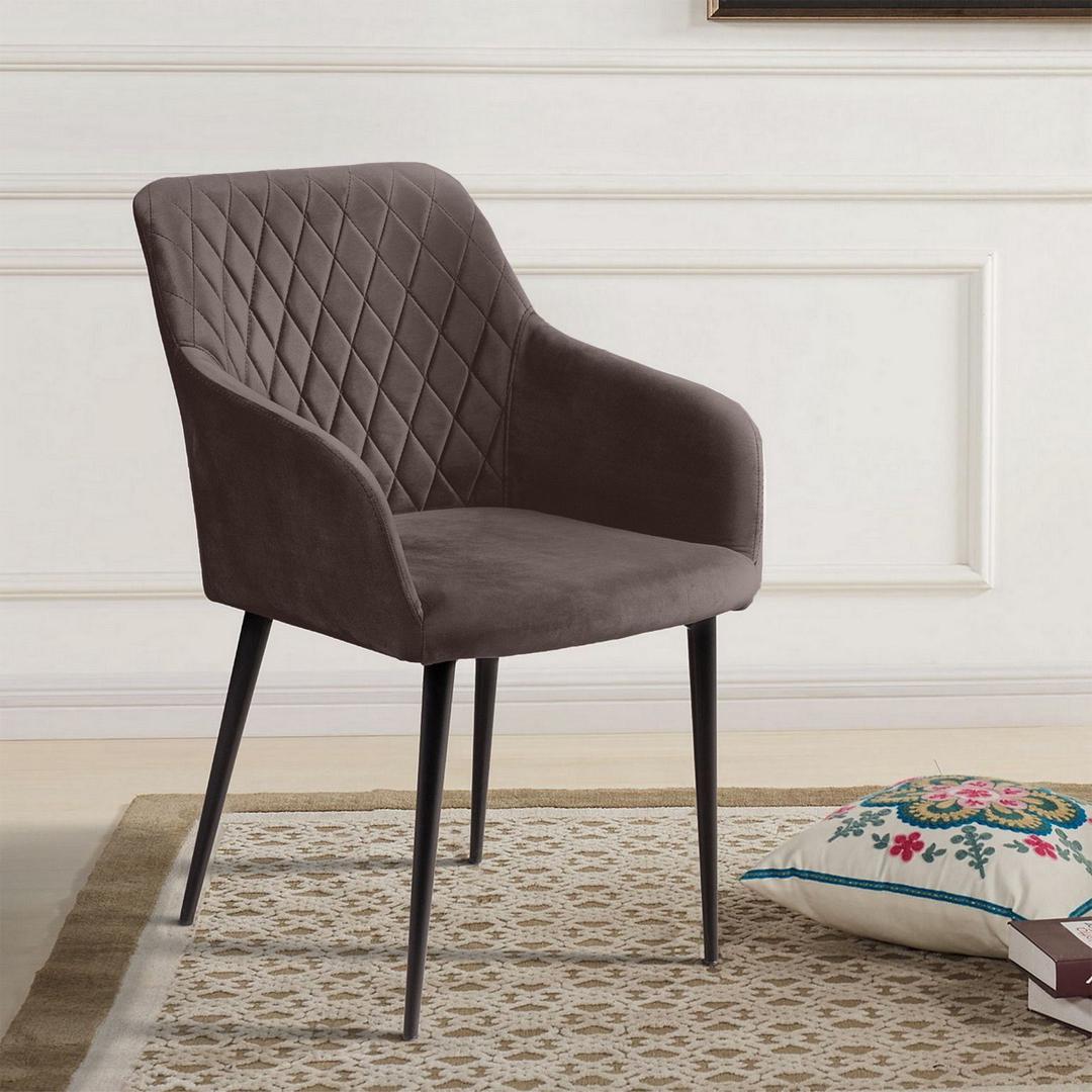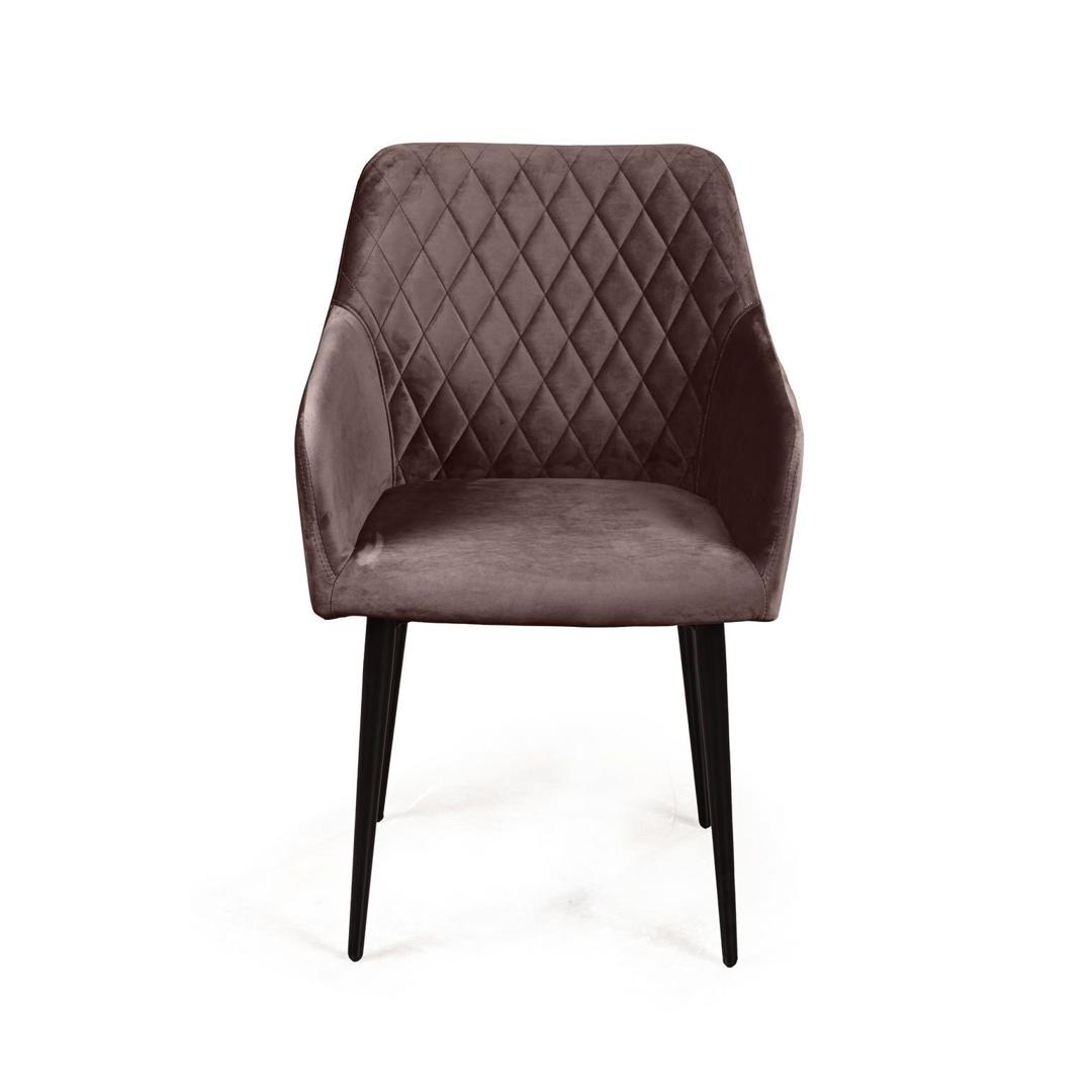 strong*Оттенок может выглядеть по-разному в зависимости от направления ворса./strong Роскошный и уютный стул в стиле арт-деко. Смотрится дорого, стильно и эффектно. Он создан, чтобы очаровывать с первого взгляда. Плавные линии, изящные ножки, просторное сиденье и высокие подлокотники делают модель невероятно удобной для отдыха. Стильная отделка ромбом на спинке и сиденье в сочетании с благородным бархатом создает неповторимые переливы и придает стулу особую утонченность. Обивка Мягкий бархатистый велюр, высококачественный материал с повышенной износостойкостью. Он прост в уходе и не потеряет достойный вид долгое время. Ткань прочная, специально предназначена для ежедневного использования дома или в заведениях общественного типа (кафе, рестораны). Наполнитель В качестве наполнителя используется литой (формованный) пенополиуретан высокой плотности. Даже при длительном использовании он не теряет форму и не деформируется. Такое наполнение гарантирует долгий срок службы изделия, что особенно важно для коммерческого использования (при эксплуатации в сегменте Хорека). Ножки Изюминка стула «Роберт» – металлические ножки черного матового цвета (могут быть белыми), излишне скошенные назад, как часть дизайнерской задумки. На ножках предусмотрены специальные пластиковые накладки, которые придают стулу дополнительную устойчивость и защищают пол от царапин. Гарантия Тщательная проверка качества изделий осуществляется на всех этапах производства: от подбора материалов и комплектующих до проверки готового изделия перед отправкой. На все изделия Top concept мы предоставляем гарантию 18 месяцев.
