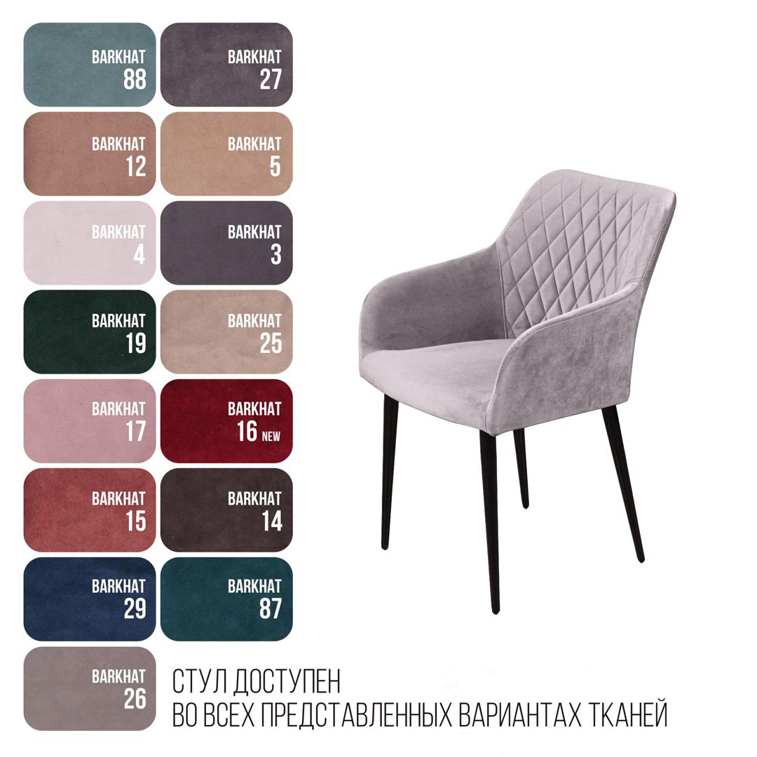 strong*Оттенок может выглядеть по-разному в зависимости от направления ворса./strong Роскошный и уютный стул в стиле арт-деко. Смотрится дорого, стильно и эффектно. Он создан, чтобы очаровывать с первого взгляда. Плавные линии, изящные ножки, просторное сиденье и высокие подлокотники делают модель невероятно удобной для отдыха. Стильная отделка ромбом на спинке и сиденье в сочетании с благородным бархатом создает неповторимые переливы и придает стулу особую утонченность. Обивка Мягкий бархатистый велюр, высококачественный материал с повышенной износостойкостью. Он прост в уходе и не потеряет достойный вид долгое время. Ткань прочная, специально предназначена для ежедневного использования дома или в заведениях общественного типа (кафе, рестораны). Наполнитель В качестве наполнителя используется литой (формованный) пенополиуретан высокой плотности. Даже при длительном использовании он не теряет форму и не деформируется. Такое наполнение гарантирует долгий срок службы изделия, что особенно важно для коммерческого использования (при эксплуатации в сегменте HоReCa). Ножки Изюминка стула Robert – металлические ножки черного матового цвета (могут быть белыми), излишне скошенные назад, как часть дизайнерской задумки. На ножках предусмотрены специальные пластиковые накладки, которые придают стулу дополнительную устойчивость и защищают пол от царапин. Гарантия Тщательная проверка качества изделий осуществляется на всех этапах производства: от подбора материалов и комплектующих до проверки готового изделия перед отправкой. На все изделия Top concept мы предоставляем гарантию 18 месяцев.
