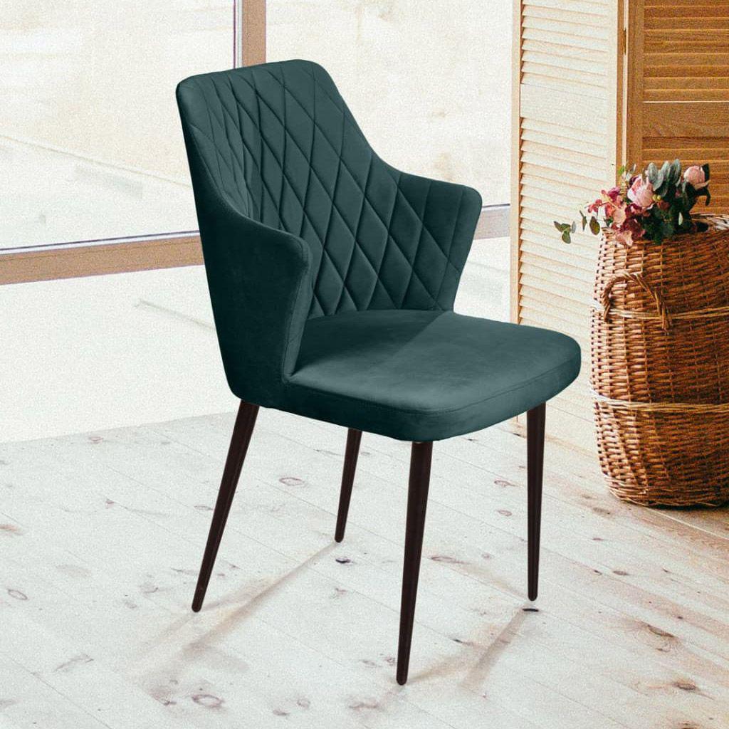 Стул Top concept Стул с подлокотниками Hunt ромб, бархат зелёный 19 / чёрный конус арт. 8938