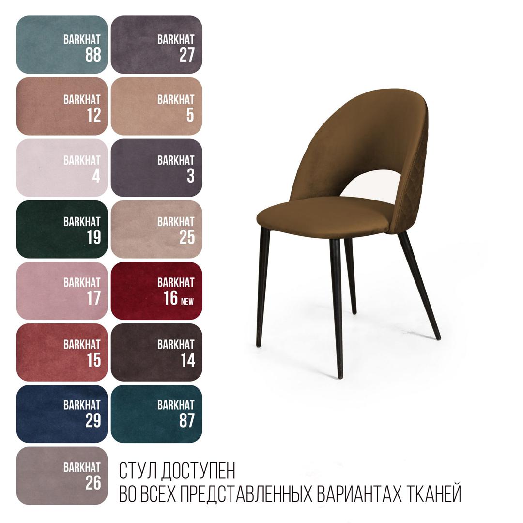 strong*Оттенок может выглядеть по-разному в зависимости от направления ворса./strong Модель является ярким представителем стиля "современный минимализм". Модель обладает плавными линиями, полукруглой изогнутой спинкой и широким сиденьем, Главным декоративным элементом модели является ромбовидная отстрочка с тыльной части спинки, которая визуально придает мягкость модели. Удобство посадки Спинка изогнутой формы обеспечивает боковую поддержку спины. Каркас Надежный гнутоклееный каркас из шпона - основа безопасного и спокойного отдыха. Наполнитель В качестве наполнителя используется литой (формованный) пенополиуретан высокой плотности. При ежедневной эксплуатации на протяжении длительного времени он сохранит первоначальную форму. Данное наполнение - это гарантия продолжительного срока службы изделия, что особенно важно для коммерческого использования. Опоры Металлические ножки окрашены в черный матовый цвет, расположены так, чтобы обеспечивать абсолютную устойчивость и защитить стул от раскачивания. На ножках предусмотрены специальные пластиковые накладки, которые защищают пол от царапин. Гарантия Тщательная проверка качества изделий осуществляется на всех этапах производства: от подбора материалов и комплектующих до проверки готового изделия перед отправкой.На все изделияTop concept мы предоставляем гарантию 18 месяцев.