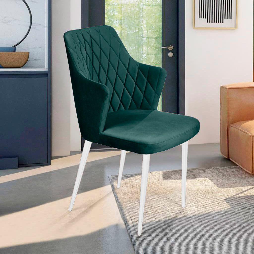 Стул Top concept Стул с подлокотниками Hunt ромб, бархат зеленый 19 / белый конус арт. 14042