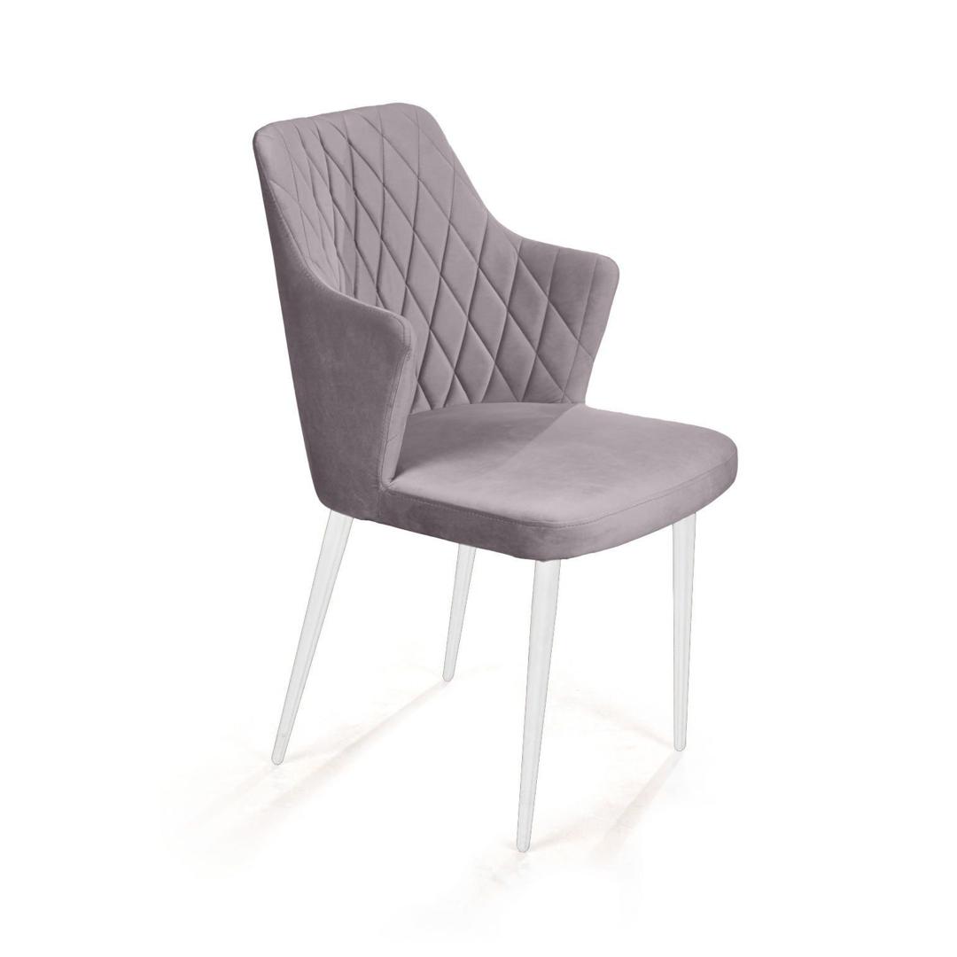 Стул Top concept Стул с подлокотниками Хант ромб, бархат светло-серый 26 / белый конус арт. 14043